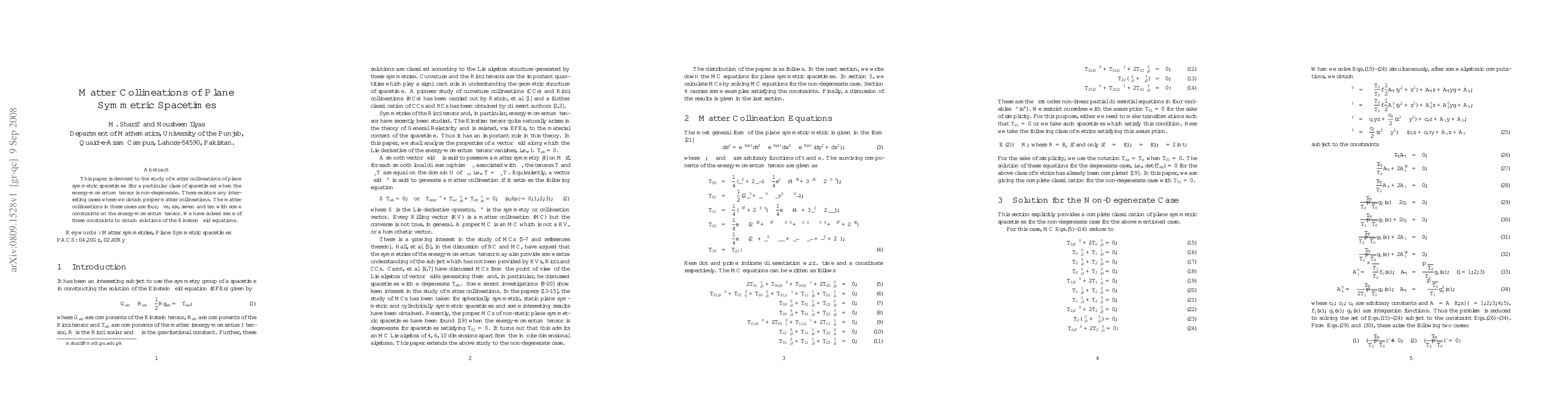 This paper investigates the matter collineations of a specific class of plane symmetric spacetimes with non-degenerate energy-momentum tensors, revealing proper collineations in four, five, six, seven, and ten forms, with derived solutions for the Einstein field equations under certain constraints.