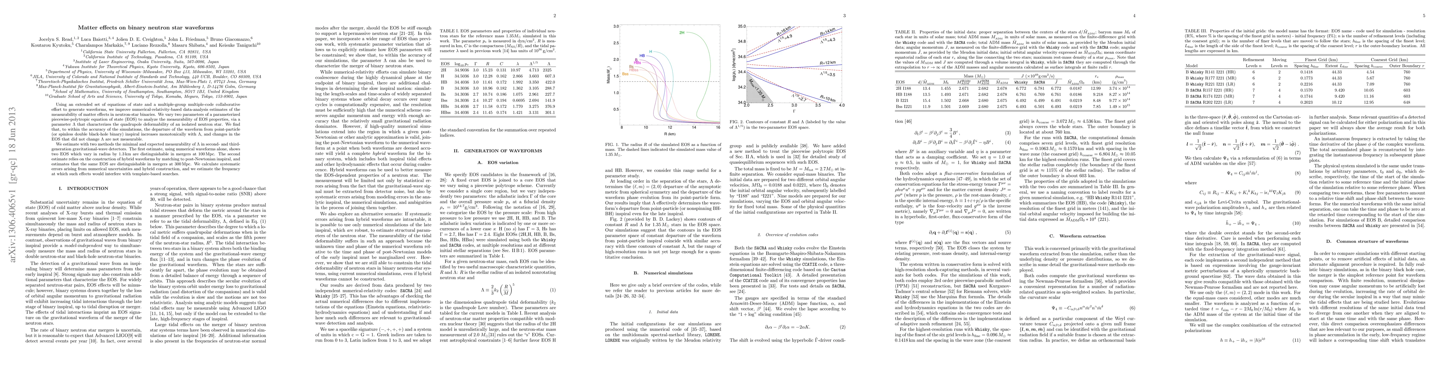 Using an extended set of equations of state and a multiple-group multiple-code collaborative effort to generate waveforms, we improve numerical-relativity-based data-analysis estimates of the measurability of matter effects in neutron-star binaries. We vary two parameters of a parameterized piecewise-polytropic equation of state (EOS) to analyze the measurability of EOS properties, via a parameter {\Lambda} that characterizes the quadrupole deformability of an isolated neutron star. We find that, to within the accuracy of the simulations, the departure of the waveform from point-particle (or spinless double black-hole binary) inspiral increases monotonically with {\Lambda}, and changes in the EOS that did not change {\Lambda} are not measurable. We estimate with two methods the minimal and expected measurability of {\Lambda} in second- and third- generation gravitational-wave detectors. The first estimate, using numerical waveforms alone, shows two EOS which vary in radius by 1.3km are distinguishable in mergers at 100Mpc. The second estimate relies on the construction of hybrid waveforms by matching to post-Newtonian inspiral, and estimates that the same EOS are distinguishable in mergers at 300Mpc. We calculate systematic errors arising from numerical uncertainties and hybrid construction, and we estimate the frequency at which such effects would interfere with template-based searches.