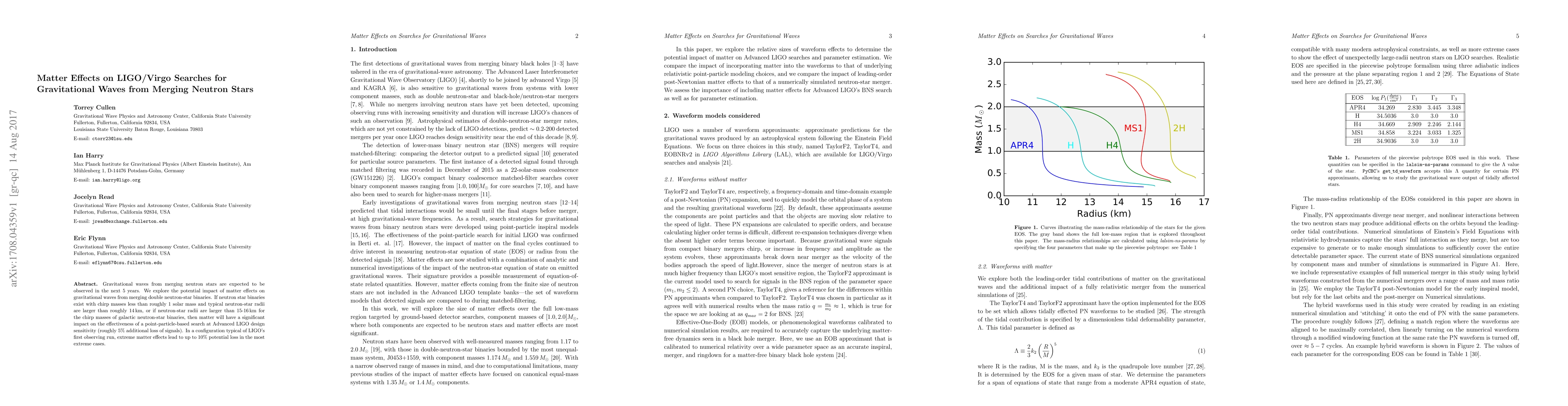 This paper investigates how matter effects influence the detection of gravitational waves from merging neutron stars by LIGO/Virgo. It finds that significant matter effects can reduce the detection efficiency by up to 10% if neutron star radii exceed certain thresholds, impacting the search strategy based on point-particle models.