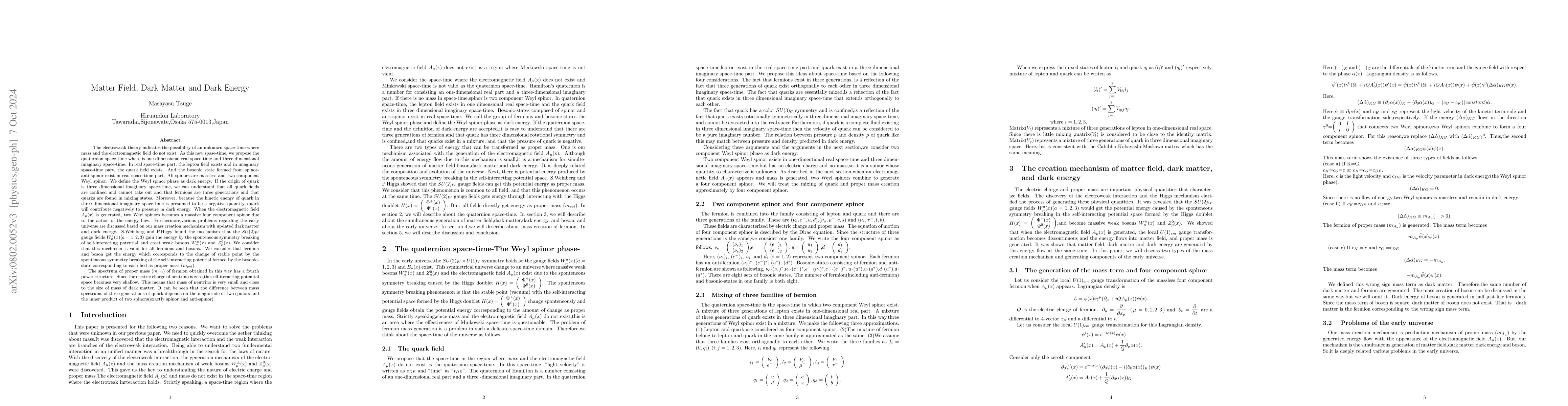 This paper proposes a model where matter fields, dark matter, and dark energy originate from an energy flow transferring from space to primordial matter fields during the early universe's phase transition. The study aims to unify particle theory with cosmological phenomena.