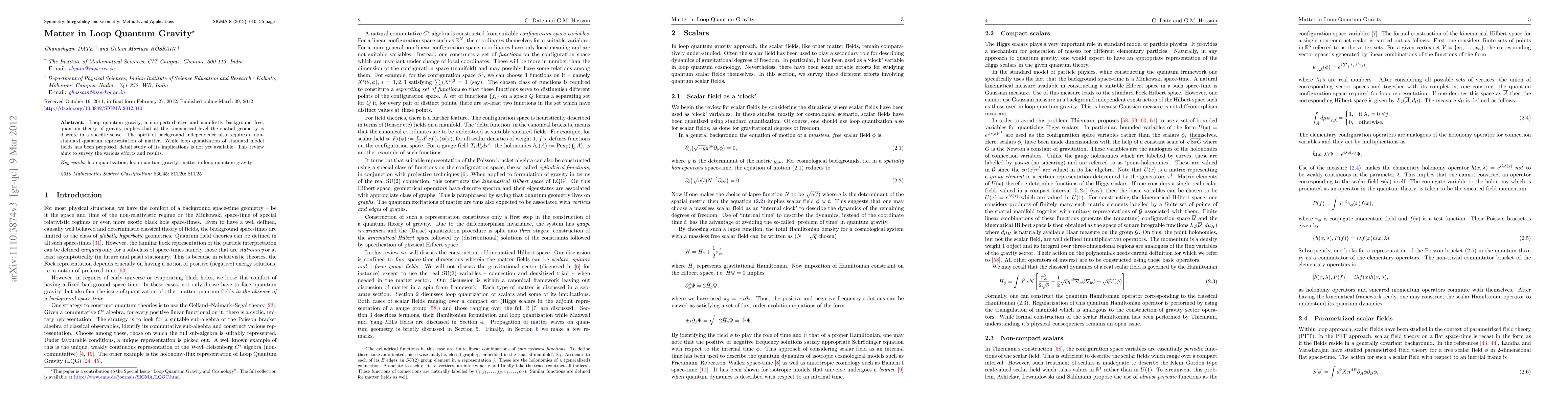 Loop quantum gravity theory suggests that space is discrete at a fundamental level, requiring a non-standard representation of matter. This review surveys recent efforts to understand the implications of loop quantization of standard model fields.