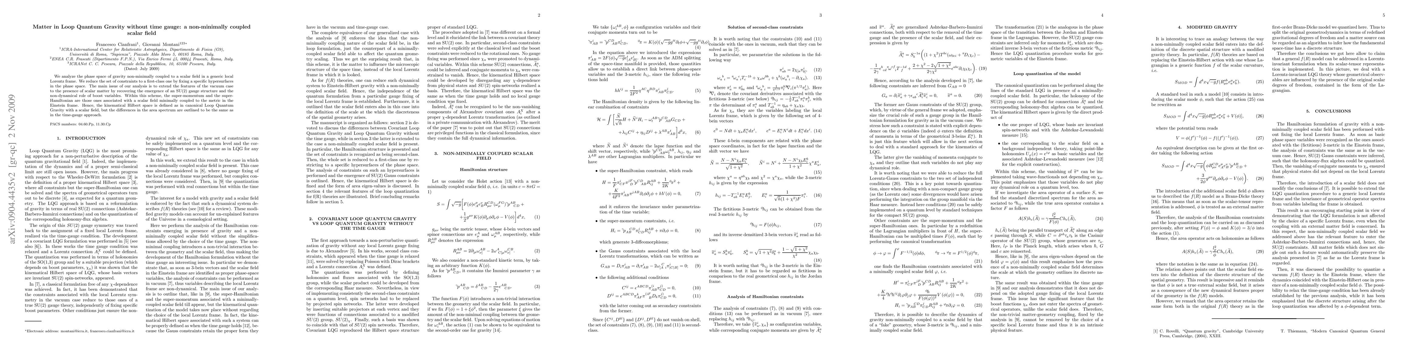 We analyze the phase space of gravity non-minimally coupled to a scalar field in a generic local Lorentz frame. We reduce the set of constraints to a first-class one by fixing a specific hypersurfaces in the phase space. The main issue of our analysis is to extend the features of the vacuum case to the presence of scalar matter by recovering the emergence of an SU(2) gauge structure and the non-dynamical role of boost variables. Within this scheme, the super-momentum and the super-Hamiltonian are those ones associated with a scalar field minimally coupled to the metric in the Einstein frame. Hence, the kinematical Hilbert space is defined as in canonical Loop Quantum Gravity with a scalar field, but the differences in the area spectrum are outlined to be the same as in the time-gauge approach.