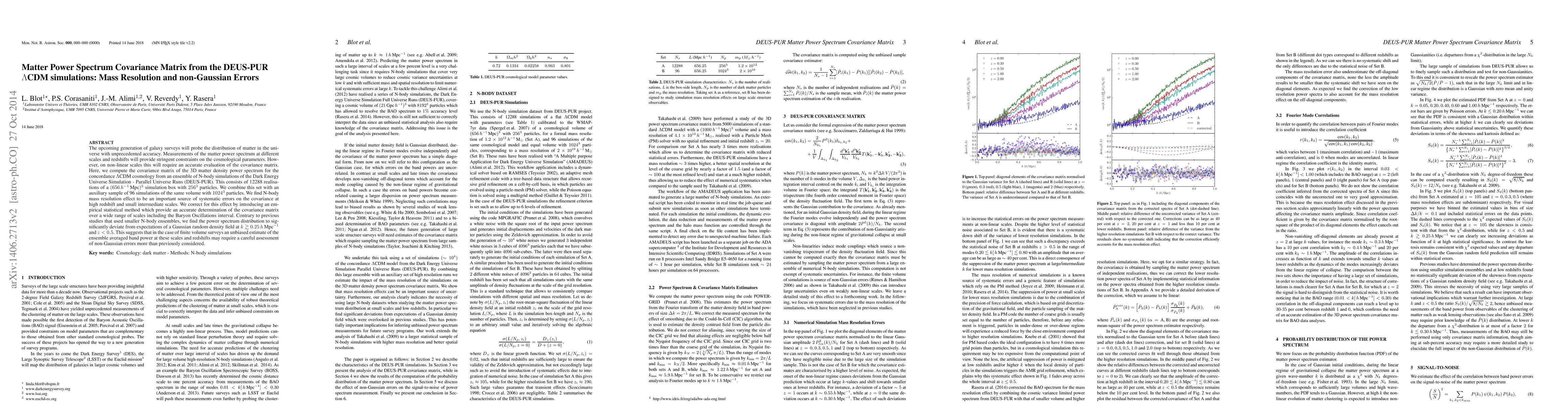 This paper evaluates the covariance matrix of the 3D matter power spectrum from the DEUS-PUR ΛCDM simulations, highlighting the impact of N-body mass resolution and non-Gaussian errors. It introduces a method to correct for mass resolution effects and finds that non-Gaussian errors significantly affect the power spectrum at certain scales and redshifts, necessitating a careful assessment for finite volume surveys.