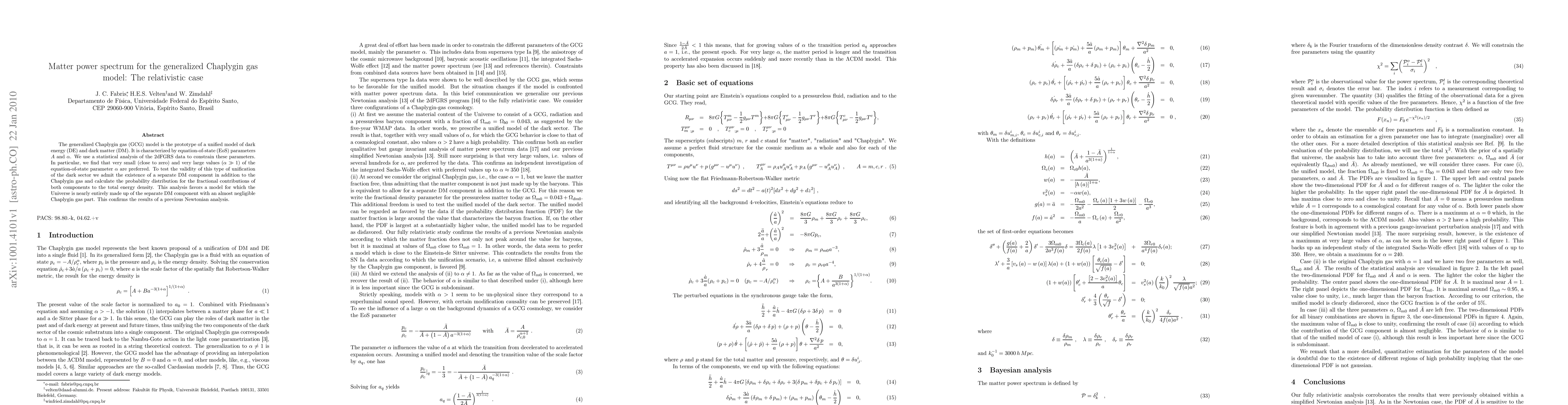 This paper investigates the matter power spectrum for the generalized Chaplygin gas model in a relativistic context, using 2dFGRS data to constrain its equation-of-state parameters. The analysis favors a model where the Universe predominantly consists of dark matter with a negligible contribution from the Chaplygin gas.