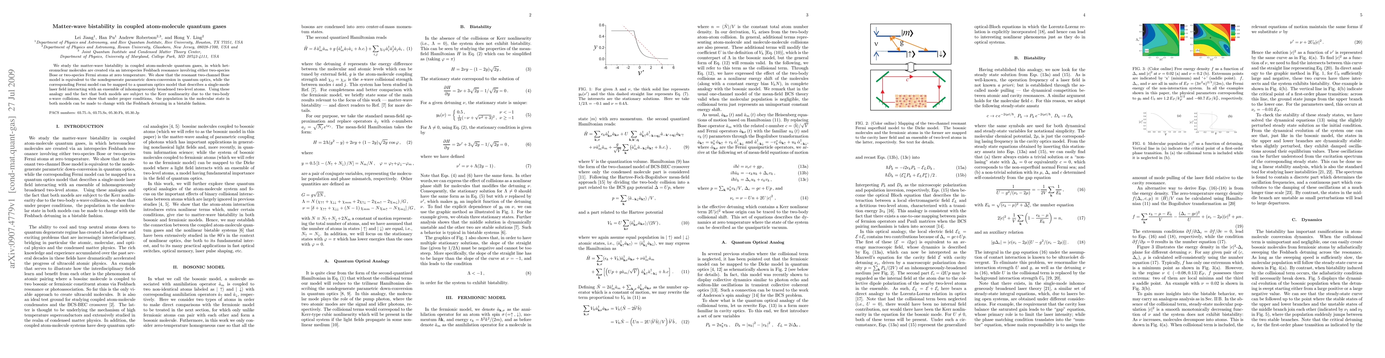 Researchers discovered matter-wave bistability in coupled atom-molecule quantum gases, a phenomenon where population in molecular states changes with Feshbach detuning, similar to parametric down-conversion in quantum optics.