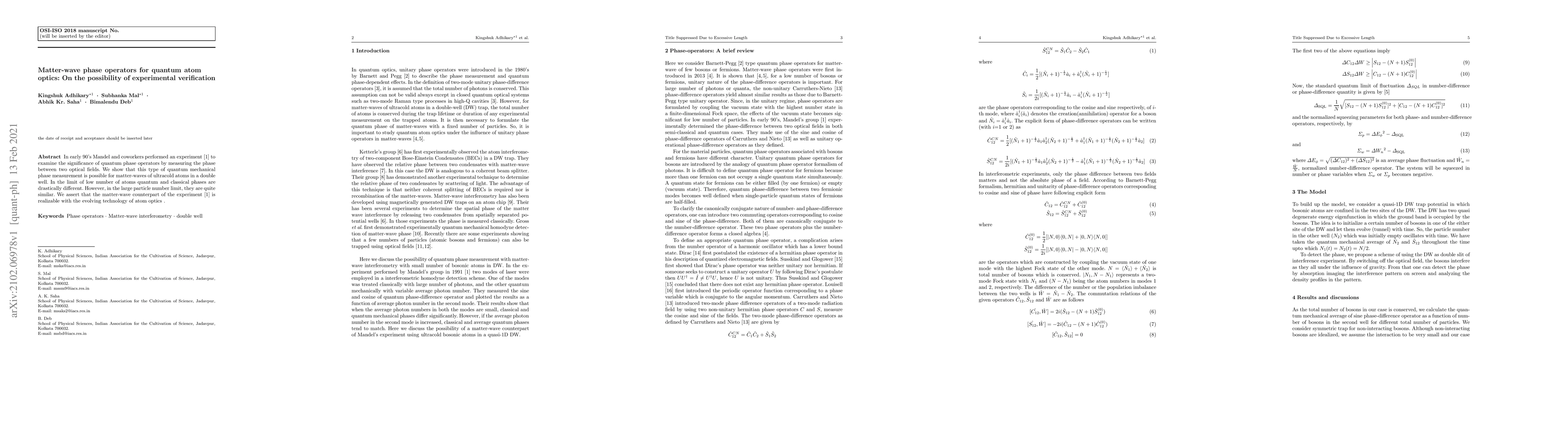 Researchers propose an experiment to measure quantum phase operators in ultracold atoms using a double well setup, similar to an earlier optical field measurement study. They claim this could be realized with current technology, exploring the limits of quantum vs classical phases in large particle numbers.