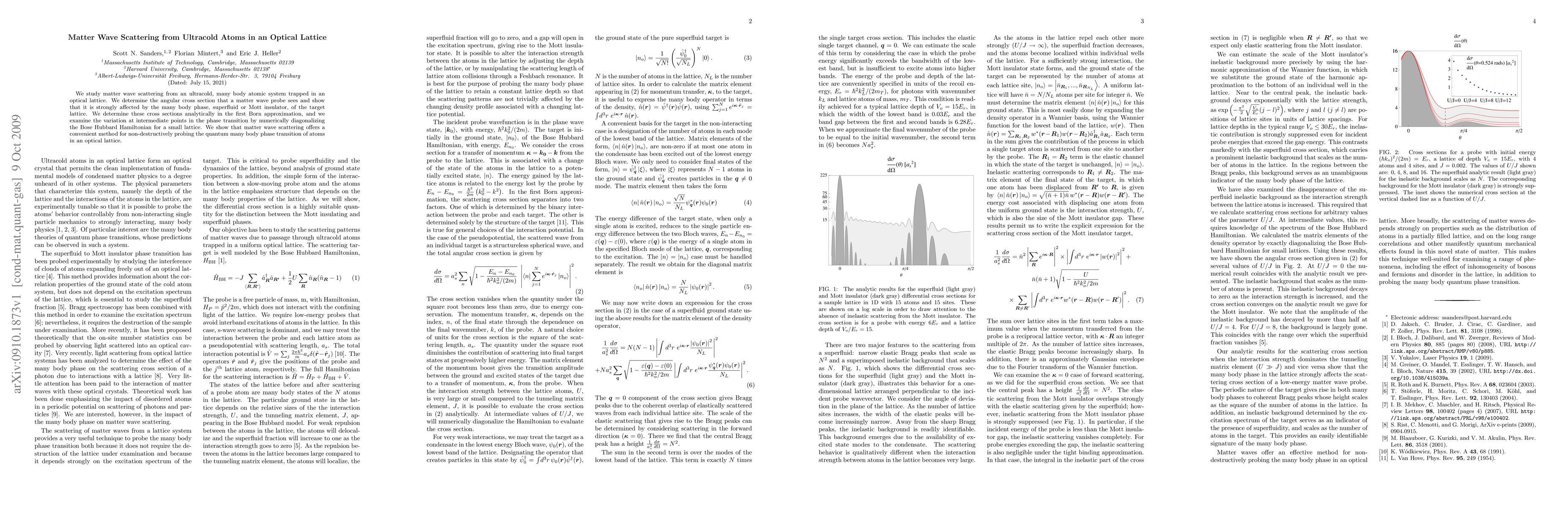 We study matter wave scattering from an ultracold, many body atomic system trapped in an optical lattice. We determine the angular cross section that a matter wave probe sees and show that it is strongly affected by the many body phase, superfluid or Mott insulator, of the target lattice. We determine these cross sections analytically in the first Born approximation, and we examine the variation at intermediate points in the phase transition by numerically diagonalizing the Bose Hubbard Hamiltonian for a small lattice. We show that matter wave scattering offers a convenient method for non-destructively probing the quantum many body phase transition of atoms in an optical lattice.