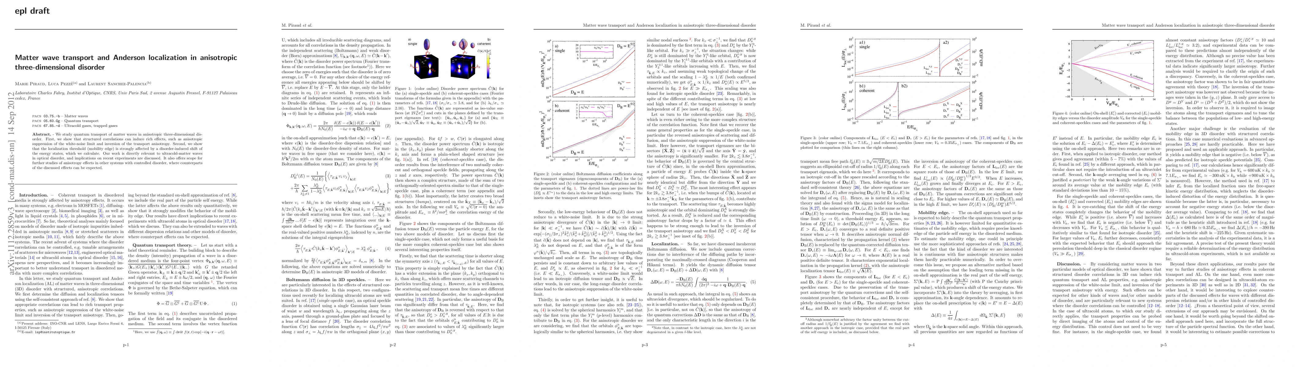 This paper investigates quantum transport in anisotropic 3D disorder, demonstrating that non-rotation invariant correlations can lead to complex diffusion and localization behaviors, including the inversion of transport anisotropy. It also examines the impact of disorder-induced energy state shifts on the mobility edge, with implications for recent experimental findings.