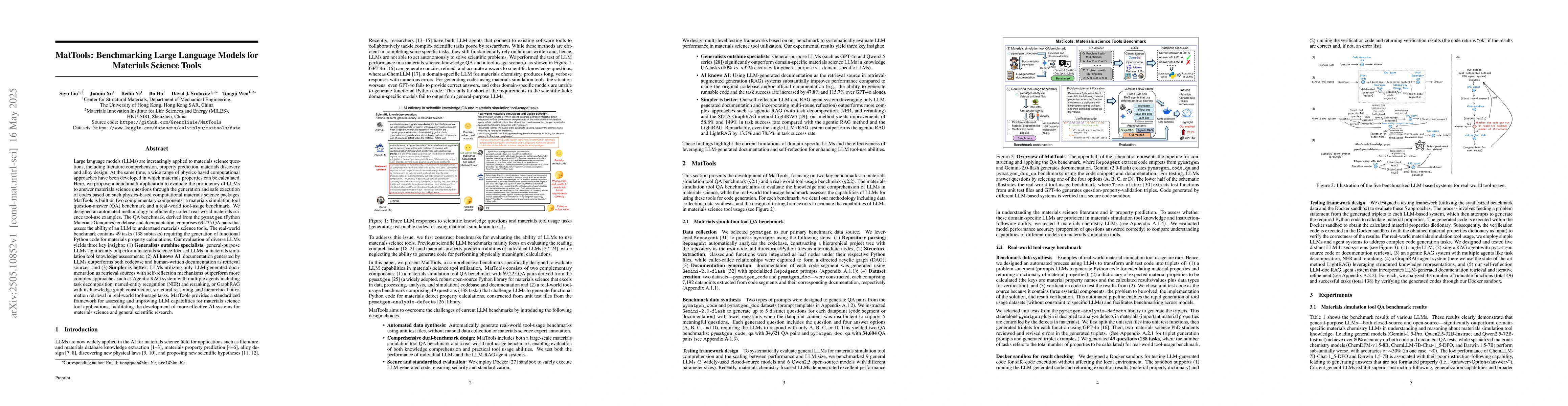 Researchers created MatTools to benchmark large language models for materials science tasks, finding that generalist models outperform specialist ones, and simpler models often perform better, providing a standardized framework for improving LLM capabilities.