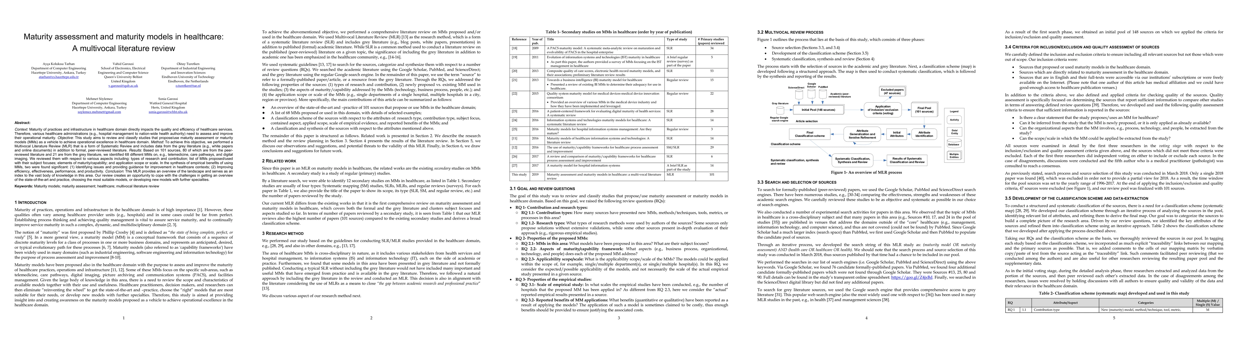 This multivocal literature review assesses maturity models in healthcare, identifying 68 models across various domains, and finds that they significantly improve efficiency and effectiveness by identifying issues and guiding improvements. The study synthesizes empirical benefits and provides a comprehensive overview to aid in model selection and development.