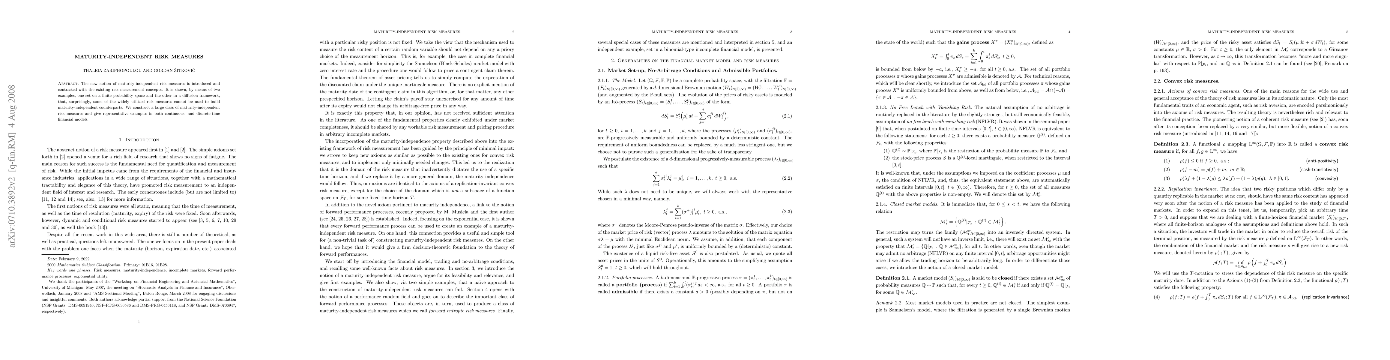 This paper introduces maturity-independent risk measures, contrasting them with existing risk concepts and demonstrating their construction via examples. It reveals limitations of conventional measures in creating maturity-independent versions and presents a broad class of such measures applicable in both continuous- and discrete-time financial models.
