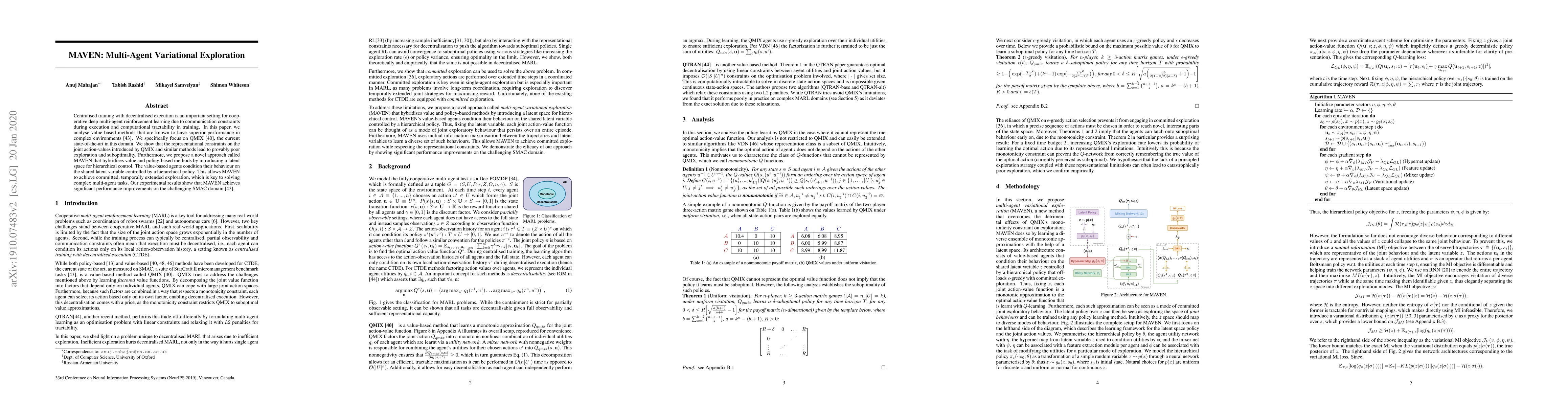 Researchers introduce MAVEN, a novel approach that combines value and policy-based methods for multi-agent reinforcement learning, achieving improved performance in complex environments. They show that traditional methods can lead to poor exploration and suboptimality due to representational constraints.