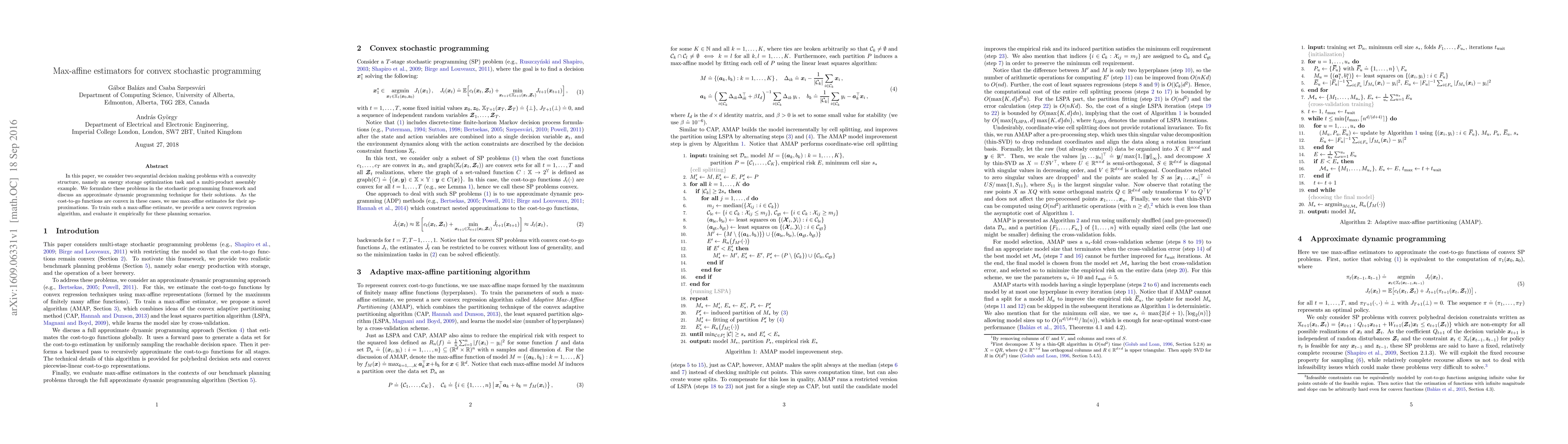 This paper proposes a max-affine estimation approach for solving convex stochastic programming problems, exemplified by energy storage optimization and multi-product assembly. It introduces a new convex regression algorithm to train max-affine estimates and evaluates its effectiveness through empirical analysis.