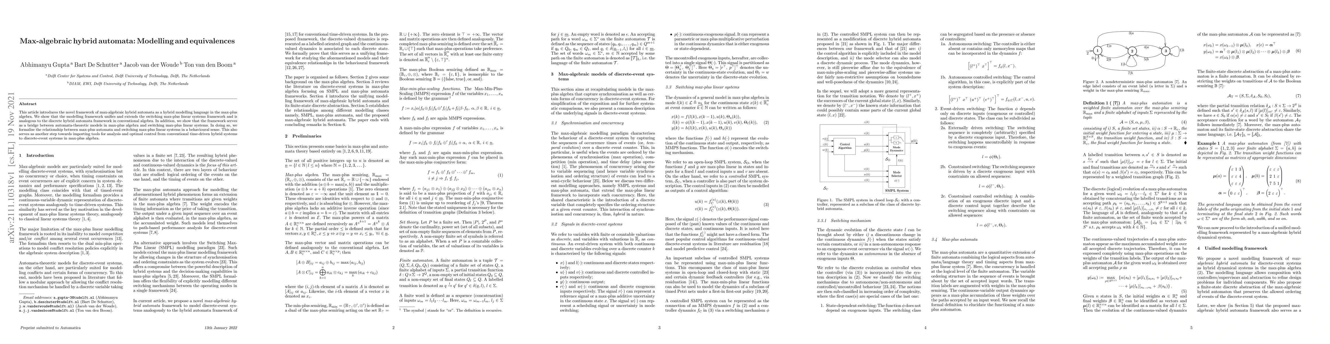 This paper introduces max-algebraic hybrid automata, a new modelling framework in max-plus algebra that unifies switching max-plus linear systems and discrete hybrid automata. It establishes a bridge between automata-theoretic models and switching systems, facilitating the transfer of analysis and control tools from conventional hybrid systems to discrete-event systems.