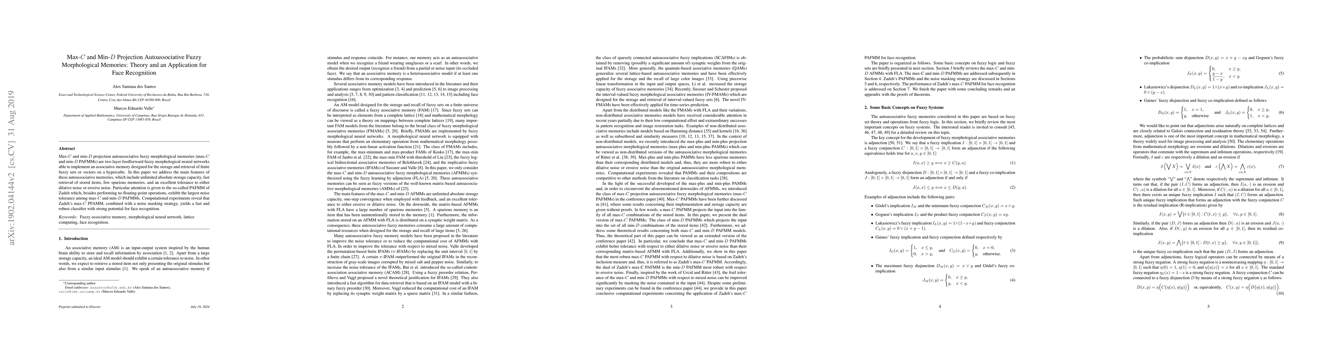 Max-C and min-D projection autoassociative fuzzy morphological memories (max-C and min-D PAFMMs) are two layer feedforward fuzzy morphological neural networks able to implement an associative memory designed for the storage and retrieval of finite fuzzy sets or vectors on a hypercube. In this paper we address the main features of these autoassociative memories, which include unlimited absolute storage capacity, fast retrieval of stored items, few spurious memories, and an excellent tolerance to either dilative noise or erosive noise. Particular attention is given to the so-called PAFMM of Zadeh which, besides performing no floating-point operations, exhibit the largest noise tolerance among max-C and min-D PAFMMs. Computational experiments reveal that Zadeh's max-C PFAMM, combined with a noise masking strategy, yields a fast and robust classifier with strong potential for face recognition.