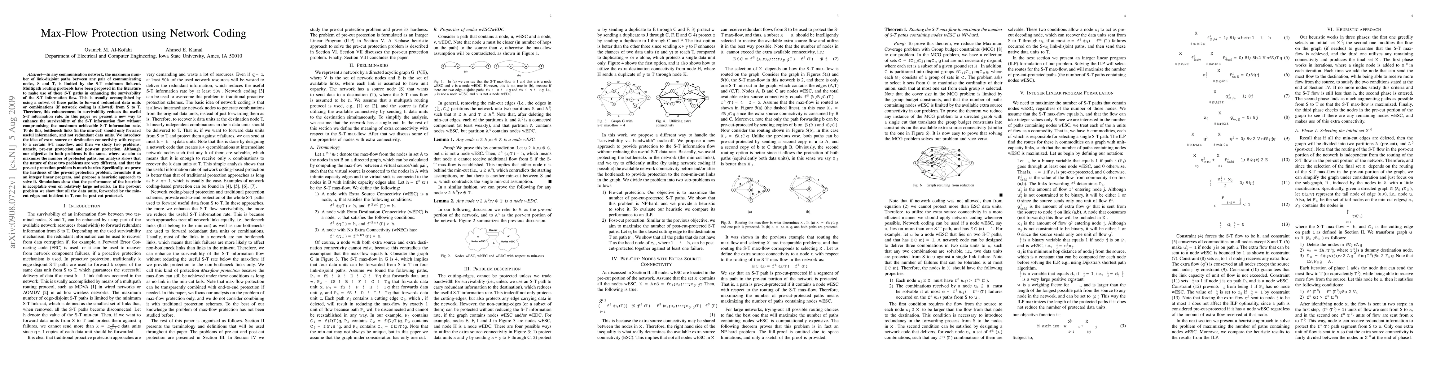In any communication network, the maximum number of link-disjoint paths between any pair of communicating nodes, S and T, is limited by the S-T minimum link-cut. Multipath routing protocols have been proposed in the literature to make use of these S-T paths in enhancing the survivability of the S-T information flow. This is usually accomplished by using a subset of these paths to forward redundant data units or combinations (if network coding is allowed) from S to T. Therefore, this enhancement in survivability reduces the useful S-T information rate. In this paper we present a new way to enhance the survivability of the S-T information flow without compromising the maximum achievable S-T information rate. To do this, bottleneck links (in the min-cut) should only forward useful information, and not redundant data units. We introduce the idea of extra source or destination connectivity with respect to a certain S-T max-flow, and then we study two problems: namely, pre-cut protection and post-cut protection. Although our objective in both problems is the same, where we aim to maximize the number of protected paths, our analysis shows that the nature of these two problems are very different, and that the pre-cut protection problem is much harder. Specifically, we prove the hardness of the pre-cut protection problem, formulate it as an integer linear program, and propose a heuristic approach to solve it. Simulations show that the performance of the heuristic is acceptable even on relatively large networks. In the post-cut problem we show that all the data units, forwarded by the min-cut edges not incident to T, can be post-cut-protected.