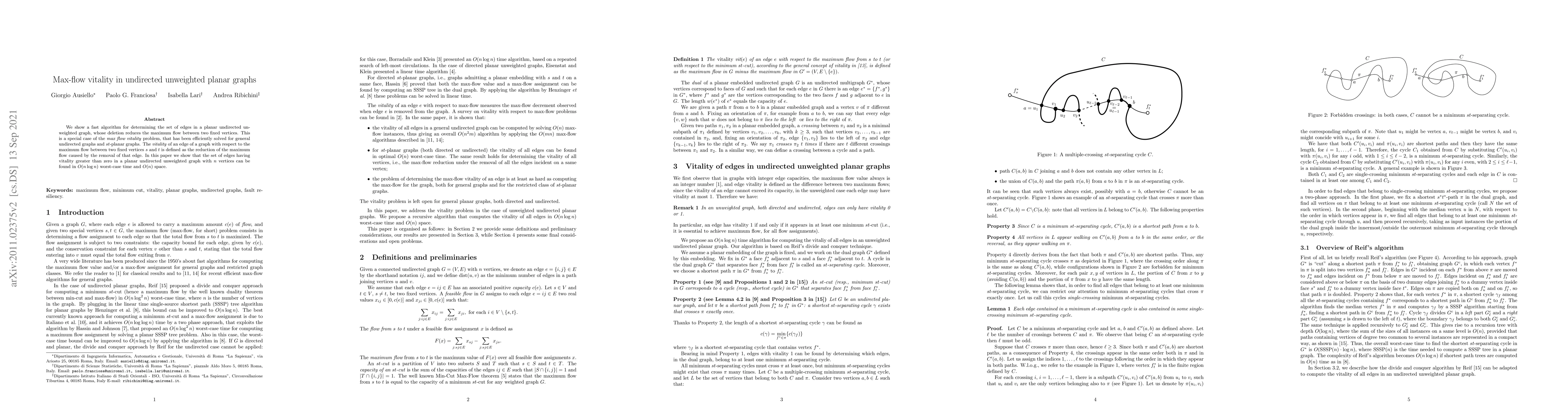 This paper presents a fast algorithm to identify edges in planar undirected unweighted graphs whose removal decreases the maximum flow between two fixed vertices, achieving O(n log n) time complexity and O(n) space. This addresses a special case of the max flow vitality problem.