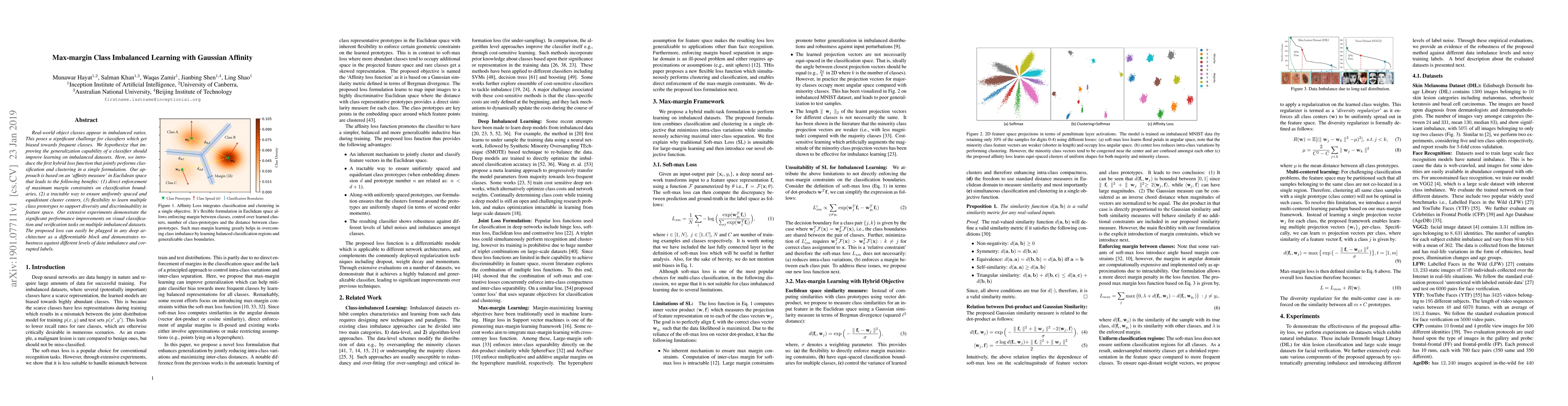 This paper proposes a hybrid loss function combining classification and clustering to address class imbalance in datasets. It leverages Gaussian affinity for maximum margin constraints, equidistant cluster centers, and multiple class prototypes, showing significant improvements in classification tasks on imbalanced datasets.