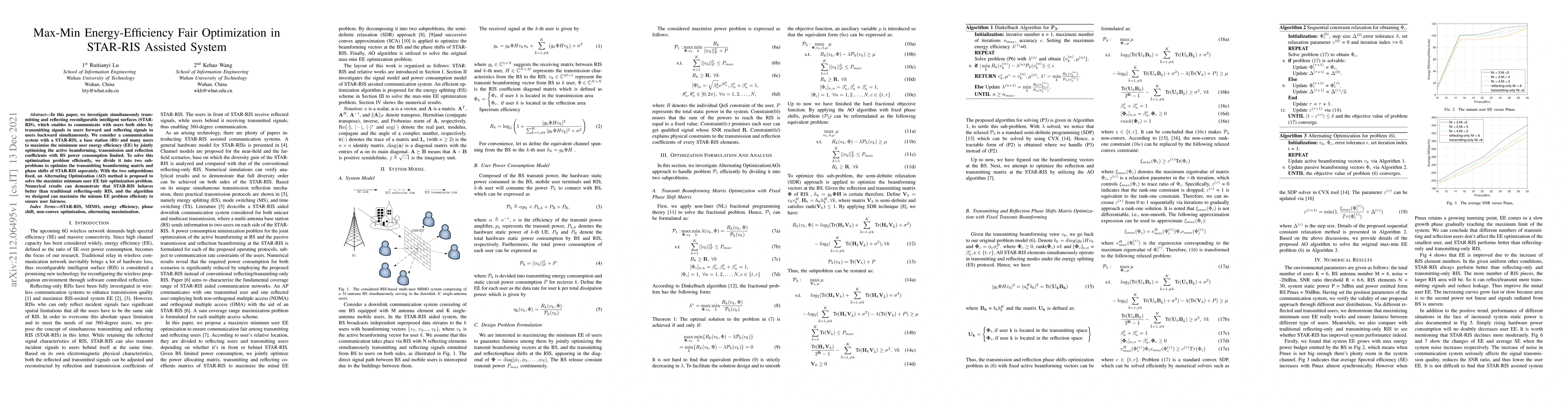 In this paper, we investigate simultaneously transmitting and reflecting reconfigurable intelligent surfaces (STAR-RIS), which enables to communicate with users both sides by transmitting signals to users forward and reflecting signals to users backward simultaneously. We consider a communicatio system with a STAR-RIS, a base station (BS) and many users to maximize the minimum user energy efficiency (EE) by jointly optimizing the active beamforming, transmission and reflection coefficients with BS power consumption limited. To solve this optimization problem efficiently, we divide it into two sub-problems to optimize the transmitting beamforming matrix and phase shifts of STAR-RIS seperately. With the two subproblems fixed, an Alternating Optimization (AO) method is proposed to solve the maximize minmum user EE fair optimization problem. Numerical results can demonstrate that STAR-RIS behaves better than traditional reflecting-only RIS, and the algorithm we desigend can maximize the minum EE problem efficienty to ensure user fairness.