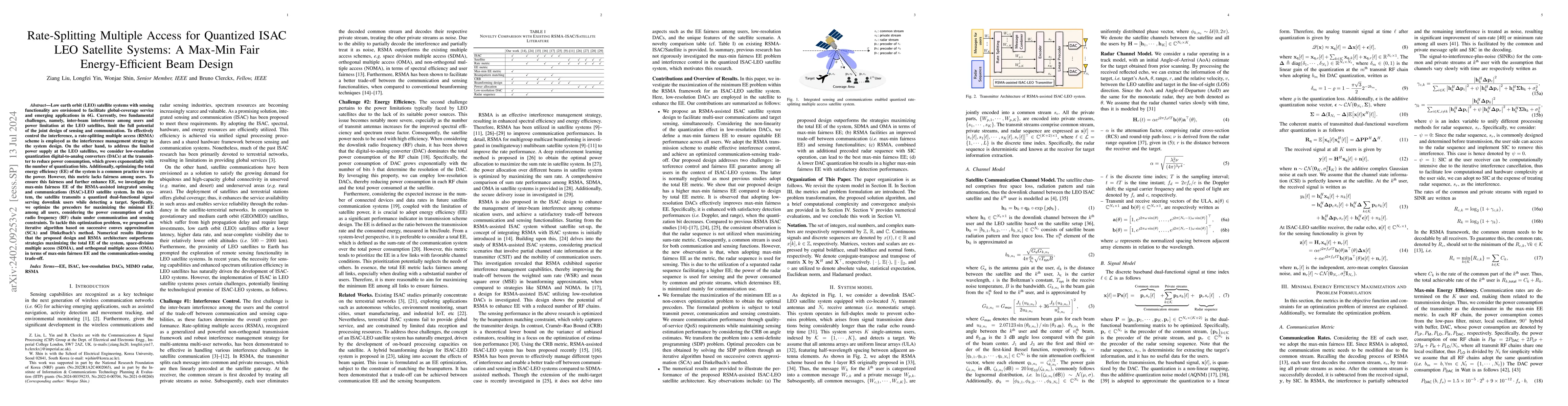 Low earth orbit (LEO) satellite systems with sensing functionality is envisioned to facilitate global-coverage service and emerging applications in 6G. Currently, two fundamental challenges, namely, inter-beam interference among users and power limitation at the LEO satellites, limit the full potential of the joint design of sensing and communication. To effectively control the interference, rate-splitting multiple access (RSMA) scheme is employed as the interference management strategy in the system design. On the other hand, to address the limited power supply at the LEO satellites, we consider low-resolution quantization digital-to-analog converters (DACs) at the transmitter to reduce power consumption, which grows exponentially with the number of quantization bits. Additionally, optimizing the total energy efficiency (EE) of the system is a common practice to save the power. However, this metric lacks fairness among users. To ensure this fairness and further enhance EE, we investigate the max-min fairness EE of the RSMA-assisted integrated sensing and communications (ISAC)-LEO satellite system. In this system, the satellite transmits a quantized dual-functional signal serving downlink users while detecting a target. Specifically, we optimize the precoders for maximizing the minimal EE among all users, considering the power consumption of each radio frequency (RF) chain under communication and sensing constraints. To tackle this optimization problem, we proposed an iterative algorithm based on successive convex approximation (SCA) and Dinkelbach's method. Numerical results illustrate that the proposed design outperforms the strategies that aim to maximize the total EE of the system and conventional space-division multiple access (SDMA) in terms of max-min fairness EE and the communication-sensing trade-off.