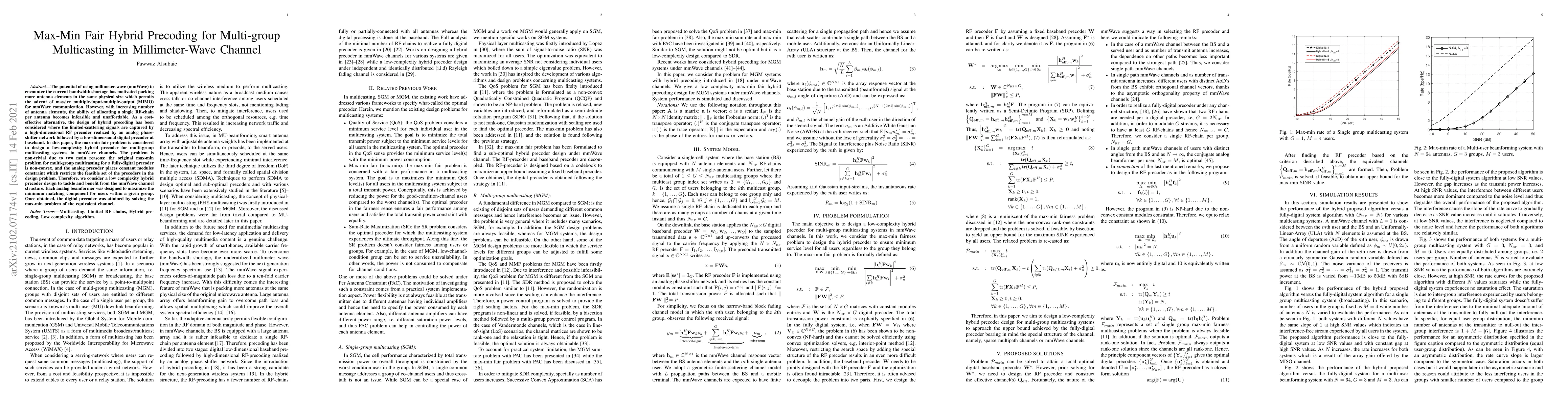 The potential of using millimeter-wave (mmWave) to encounter the current bandwidth shortage has motivated packing more antenna elements in the same physical size which permits the advent of massive multiple-input-multiple-output (MIMO) for mmWave communication. However, with increasing number of antenna elements, the ability of allocating a single RF-chain per antenna becomes infeasible and unaffordable. As a cost-effective alternative, the design of hybrid precoding has been considered where the limited-scattering signals are captured by a high-dimensional RF precoder realized by an analog phase-shifter network followed by a low-dimensional digital precoder at baseband. In this paper, the max-min fair problem is considered to design a low-complexity hybrid precoder for multi-group multicasting systems in mmWave channels. The problem is non-trivial due to two main reasons: the original max-min problem for multi-group multicasting for a fully-digital precoder is non-convex, and the analog precoder places constant modules constraint which restricts the feasible set of the precoders in the design problem. Therefore, we consider a low complexity hybrid precoder design to tackle and benefit from the mmWave channel structure. Each analog beamformer was designed to maximize the minimum matching component for users within a given group. Once obtained, the digital precoder was attained by solving the max-min problem of the equivalent channel.