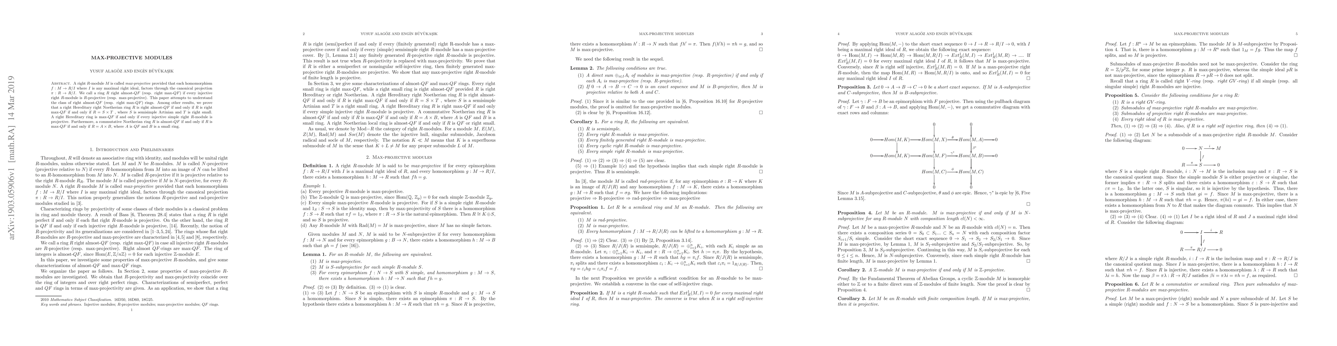 A right $R$-module $M$ is called max-projective provided that each homomorphism $f:M \to R/I$ where $I$ is any maximal right ideal, factors through the canonical projection $\pi : R \to R/I$. We call a ring $R$ right almost-$QF$ (resp. right max-$QF$) if every injective right $R$-module is $R$-projective (resp. max-projective). This paper attempts to understand the class of right almost-$QF$ (resp. right max-$QF$) rings. Among other results, we prove that a right Hereditary right Noetherian ring $R$ is right almost-$QF$ if and only if $R$ is right max-$QF$ if and only if $R=S\times T$ , where $S$ is semisimple Artinian and $T$ is right small. A right Hereditary ring is max-$QF$ if and only if every injective simple right $R$-module is projective. Furthermore, a commutative Noetherian ring $R$ is almost-$QF$ if and only if $R$ is max-$QF$ if and only if $R=A \times B$, where $A$ is $QF$ and $B$ is a small ring.