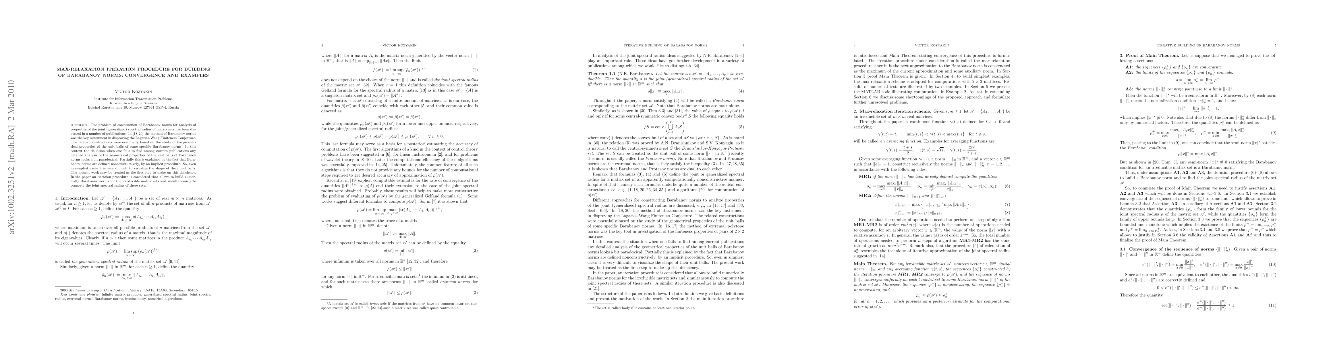 The problem of construction of Barabanov norms for analysis of properties of the joint (generalized) spectral radius of matrix sets has been discussed in a number of publications. In previous papers of the author the method of Barabanov norms was the key instrument in disproving the Lagarias-Wang Finiteness Conjecture. The related constructions were essentially based on the study of the geometrical properties of the unit balls of some specific Barabanov norms. In this context the situation when one fails to find among current publications any detailed analysis of the geometrical properties of the unit balls of Barabanov norms looks a bit paradoxical. Partially this is explained by the fact that Barabanov norms are defined nonconstructively, by an implicit procedure. So, even in simplest cases it is very difficult to visualize the shape of their unit balls. The present work may be treated as the first step to make up this deficiency. In the paper an iteration procedure is considered that allows to build numerically Barabanov norms for the irreducible matrix sets and simultaneously to compute the joint spectral radius of these sets.