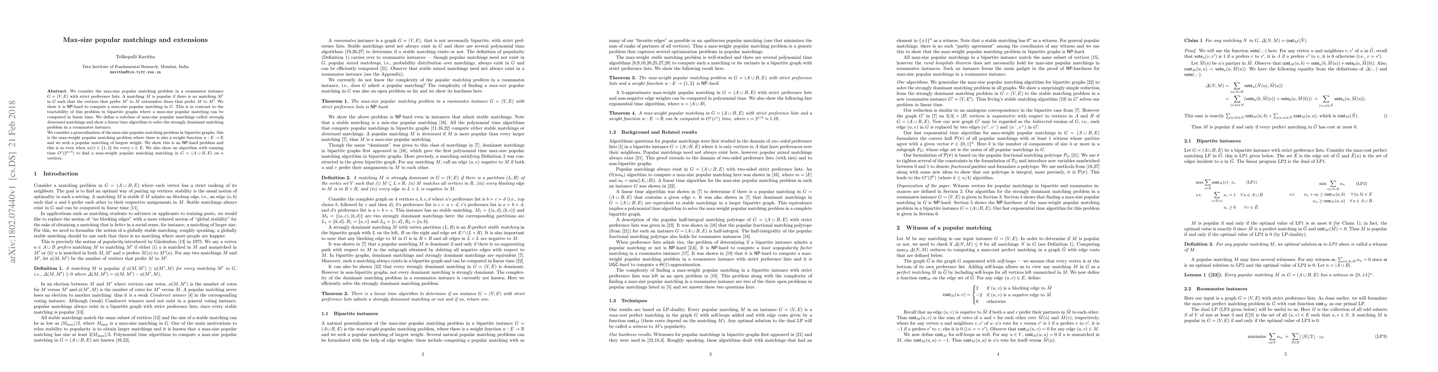 The paper introduces the concept of strongly dominant matchings and provides a linear-time algorithm for them, while also establishing the NP-hardness of max-weight popular matchings in bipartite graphs.