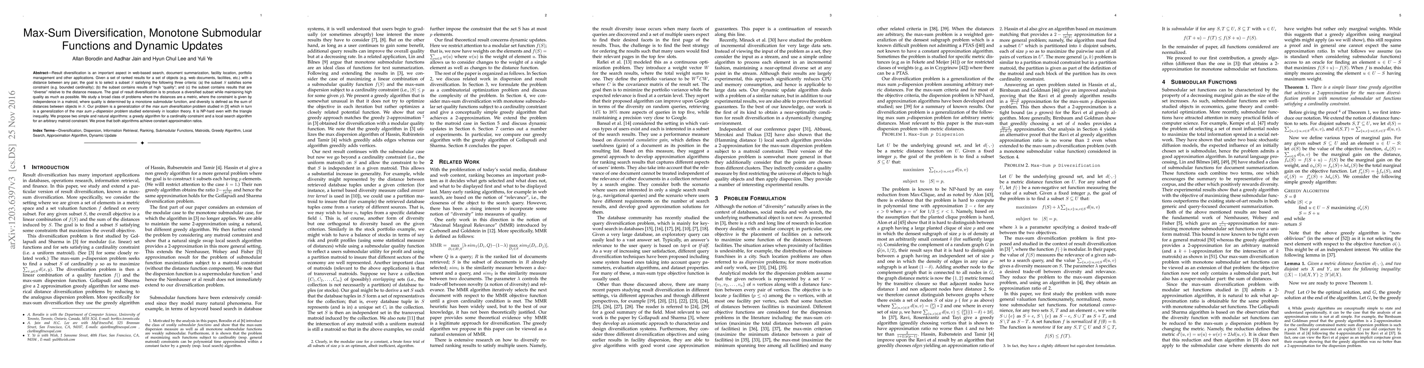 Researchers developed algorithms to optimize result diversification in various applications by balancing quality, diversity, and constraints, achieving constant approximation ratios.
