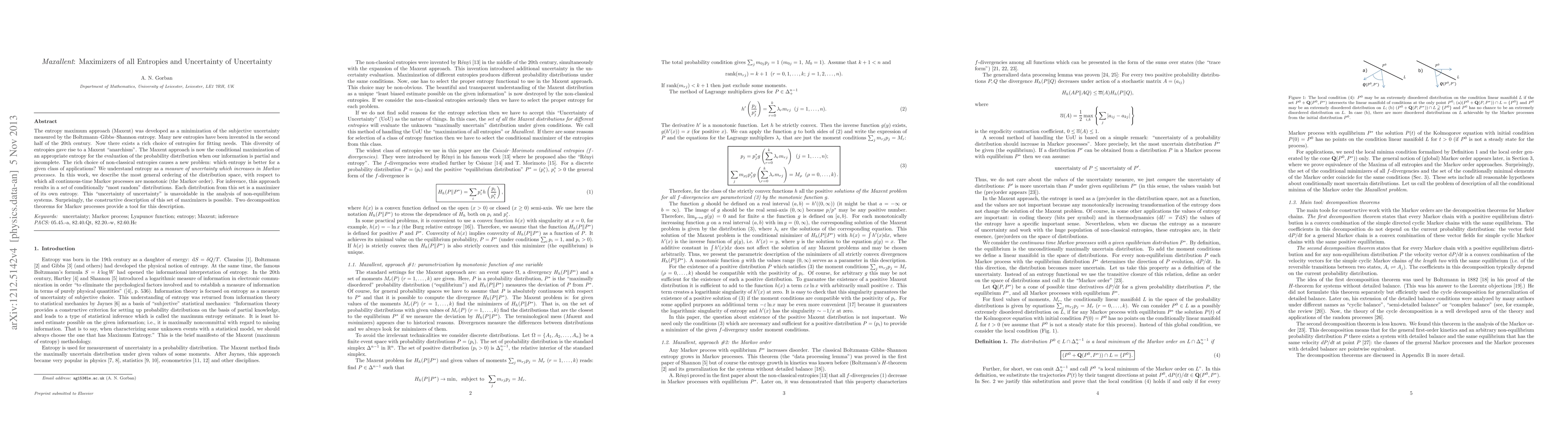 The entropy maximum approach (Maxent) was developed as a minimization of the subjective uncertainty measured by the Boltzmann--Gibbs--Shannon entropy. Many new entropies have been invented in the second half of the 20th century. Now there exists a rich choice of entropies for fitting needs. This diversity of entropies gave rise to a Maxent "anarchism". Maxent approach is now the conditional maximization of an appropriate entropy for the evaluation of the probability distribution when our information is partial and incomplete. The rich choice of non-classical entropies causes a new problem: which entropy is better for a given class of applications? We understand entropy as a measure of uncertainty which increases in Markov processes. In this work, we describe the most general ordering of the distribution space, with respect to which all continuous-time Markov processes are monotonic (the Markov order). For inference, this approach results in a set of conditionally "most random" distributions. Each distribution from this set is a maximizer of its own entropy. This "uncertainty of uncertainty" is unavoidable in analysis of non-equilibrium systems. Surprisingly, the constructive description of this set of maximizers is possible. Two decomposition theorems for Markov processes provide a tool for this description.