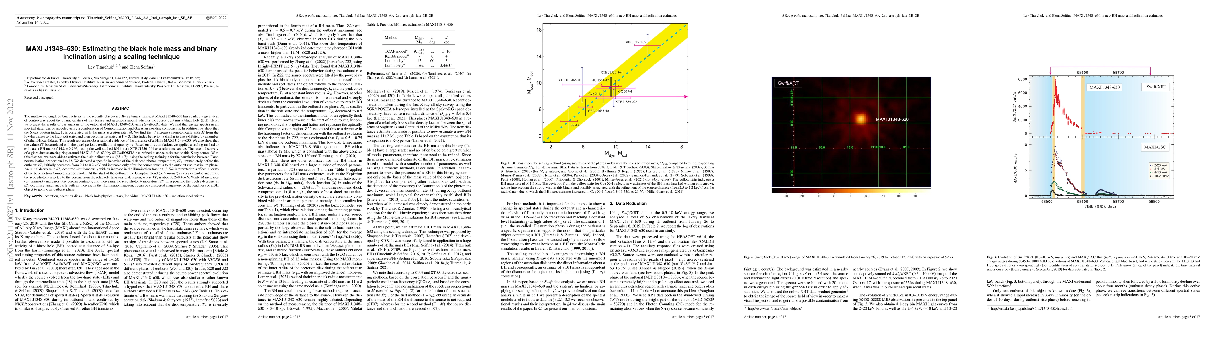 This study analyzes the MAXI~J1348--630 outburst using Swift/XRT data, finding evidence for a black hole (BH) through spectral modeling and correlation of the X-ray photon index with mass accretion rate. The researchers estimate a BH mass of 14.8 +/- 0.9 M_{\odot} and a binary inclination of (65+/- 7)^0 using a scaling method and the recent discovery of a dust scattering ring.