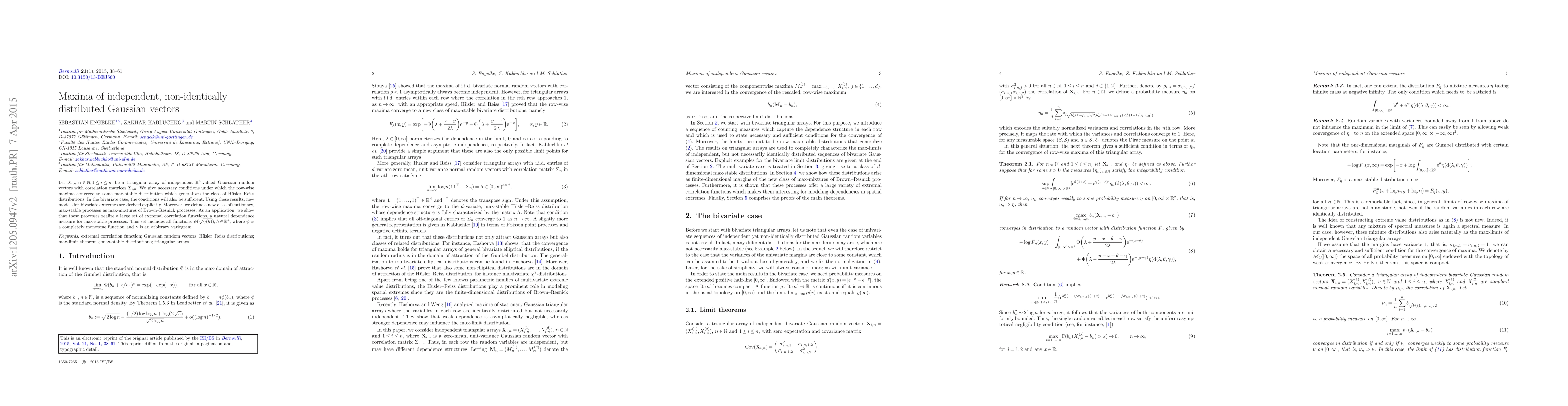 This paper investigates the convergence of row-wise maxima of independent Gaussian vectors to max-stable distributions, generalizing H{\"u}sler-Reiss distributions. It provides necessary and sufficient conditions for the bivariate case and introduces new models for bivariate extremes, along with a new class of max-stable processes.