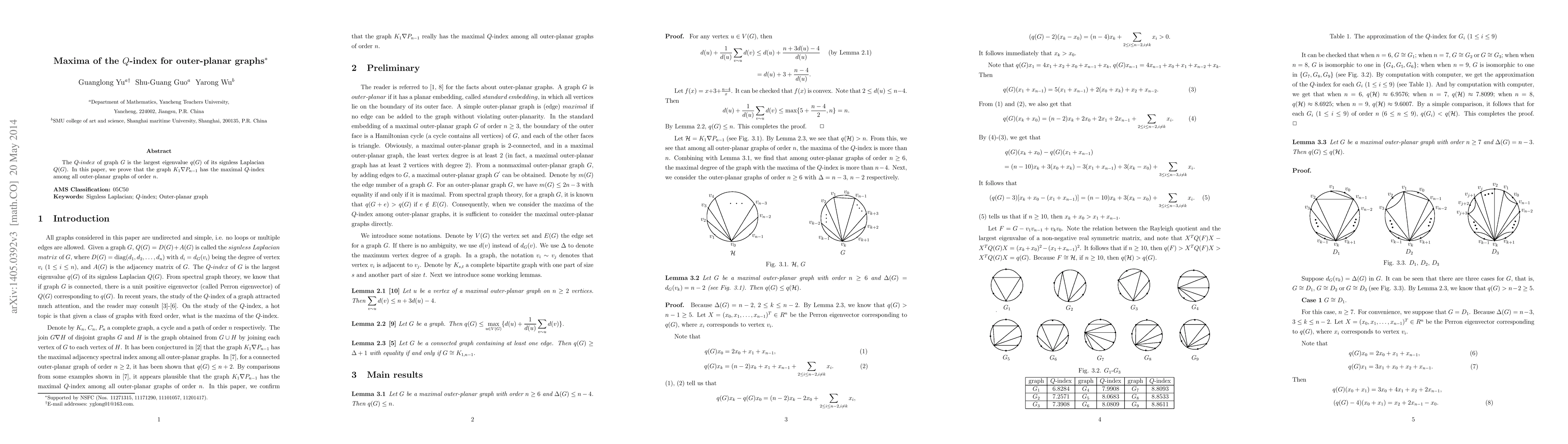 The $Q$-$index$ of graph $G$ is the largest eigenvalue $q(G)$ of its signless Laplacian $Q(G)$. In this paper, we prove that the graph $K_{1}\nabla P_{n-1}$ has the maximal $Q$-index among all outer-planar graphs of order $n$.