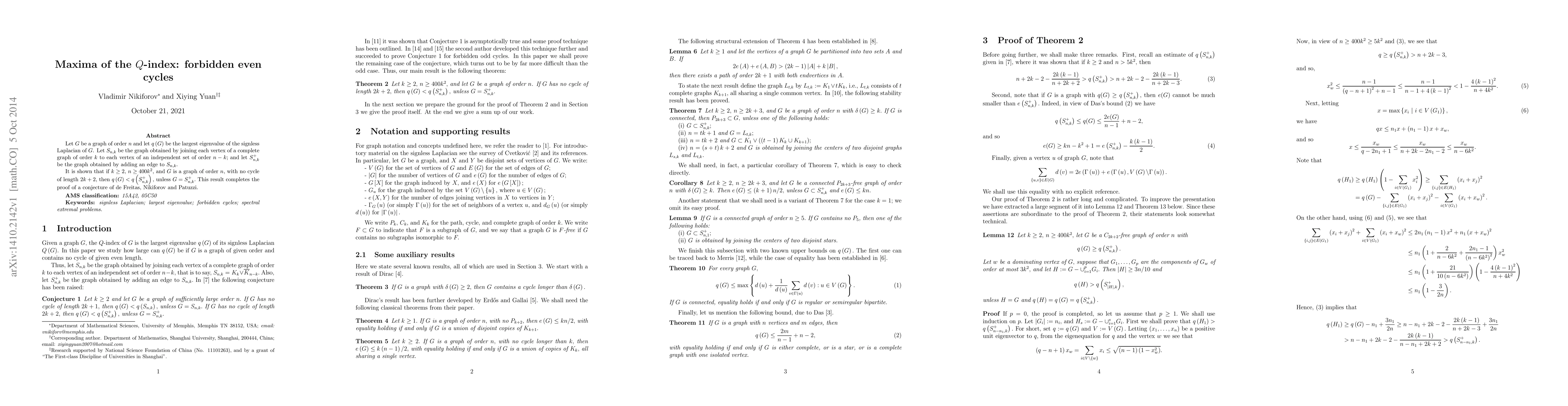 $n,$ with no cycle of length $2k+2,$ then $q\left( G\right)