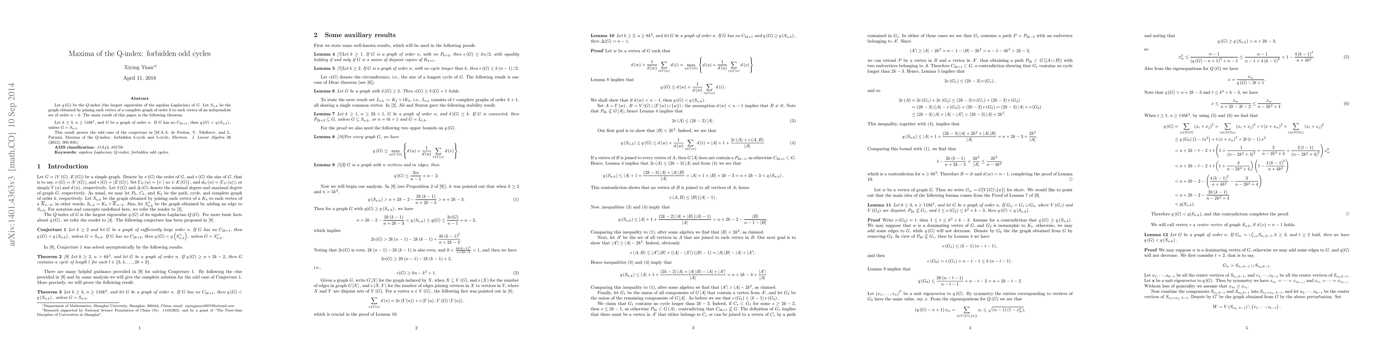 This paper investigates the Q-index of graphs without forbidden odd cycles, proving that for sufficiently large graphs without a $(2k+1)$-cycle, the Q-index is maximized by the specific graph $S_{n,k}$ unless the graph is exactly $S_{n,k}$. This result supports the odd case of a broader conjecture regarding the Q-index and forbidden subgraphs.