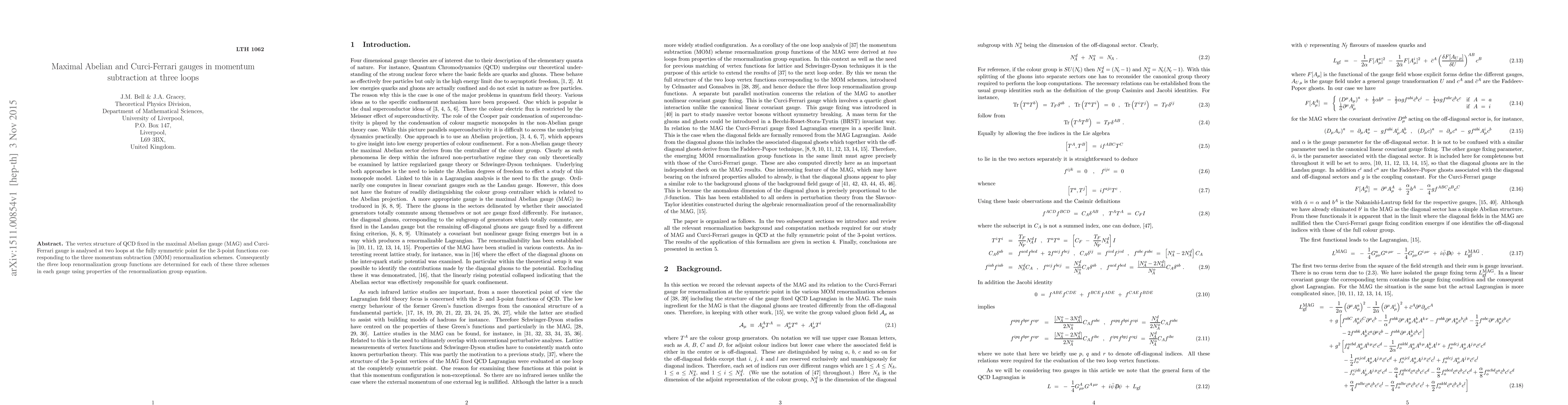 This paper examines the vertex structure in QCD under maximal abelian and Curci-Ferrari gauges at two loops, focusing on the 3-point functions relevant to three momentum subtraction schemes. It determines the three loop renormalization group functions for these schemes in each gauge.