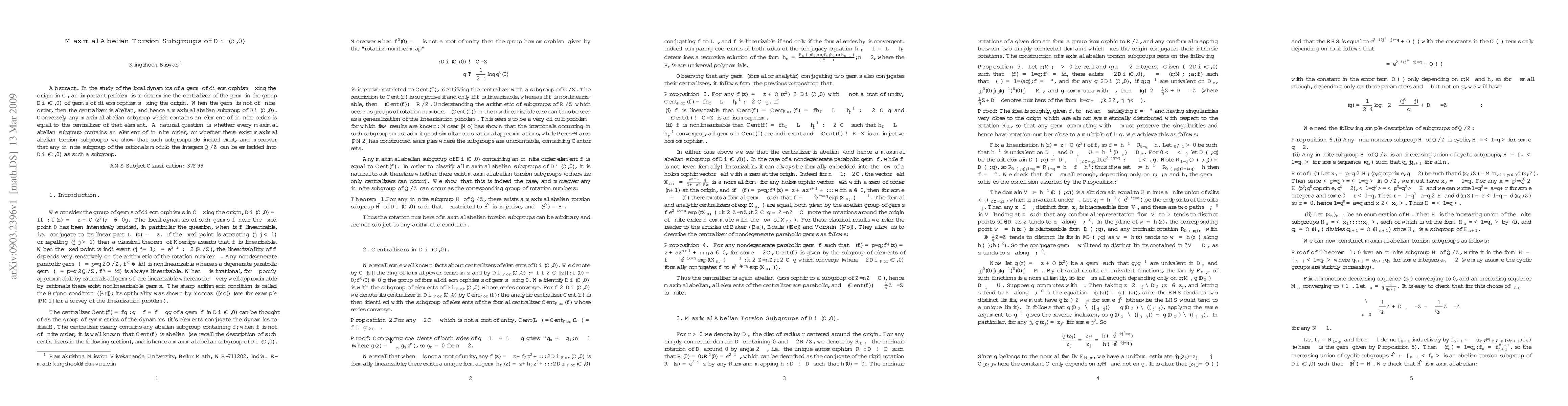 This paper explores the maximal abelian torsion subgroups within the group Diff(C,0) of germs of diffeomorphisms fixing the origin. It demonstrates the existence of maximal abelian torsion subgroups and shows that any infinite subgroup of the rationals modulo the integers Q/Z can be embedded into Diff(C,0).