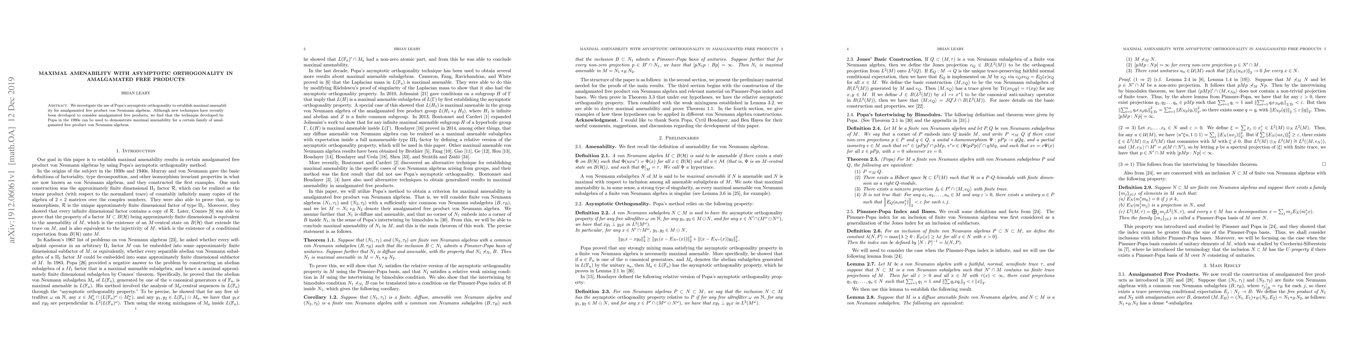 This paper utilizes Popa's concept of asymptotic orthogonality to prove maximal amenability for specific amalgamated free product von Neumann algebras, despite the emergence of new techniques. It demonstrates that Popa's 1980s method remains effective for this purpose.