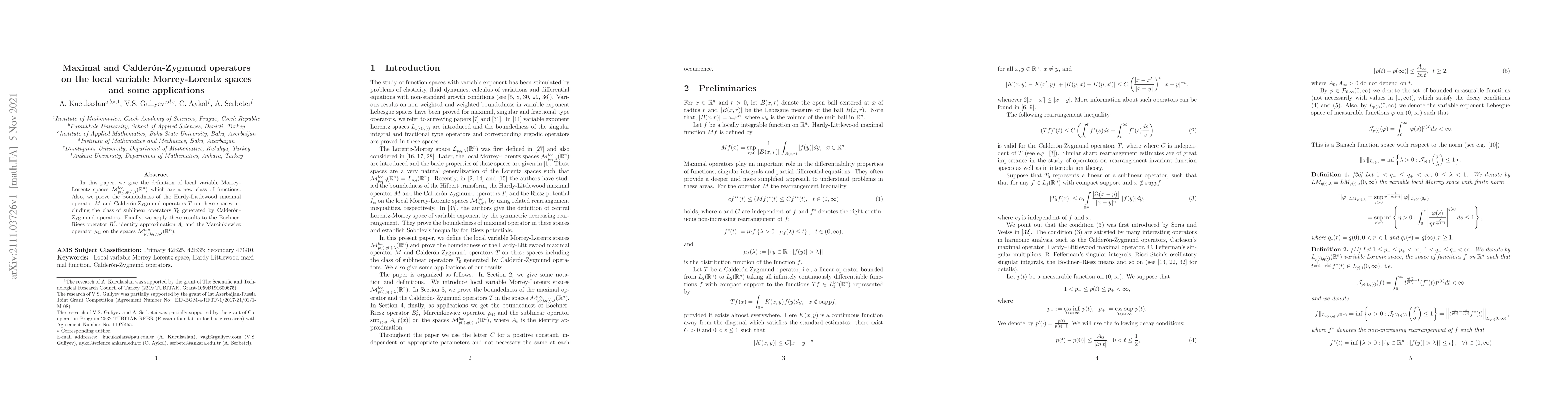 This paper introduces local variable Morrey-Lorentz spaces and demonstrates the boundedness of the Hardy-Littlewood maximal operator and Calderon-Zygmund operators on these spaces. Applications include results for the Bochner-Riesz, identity approximation, and Marcinkiewicz operators.