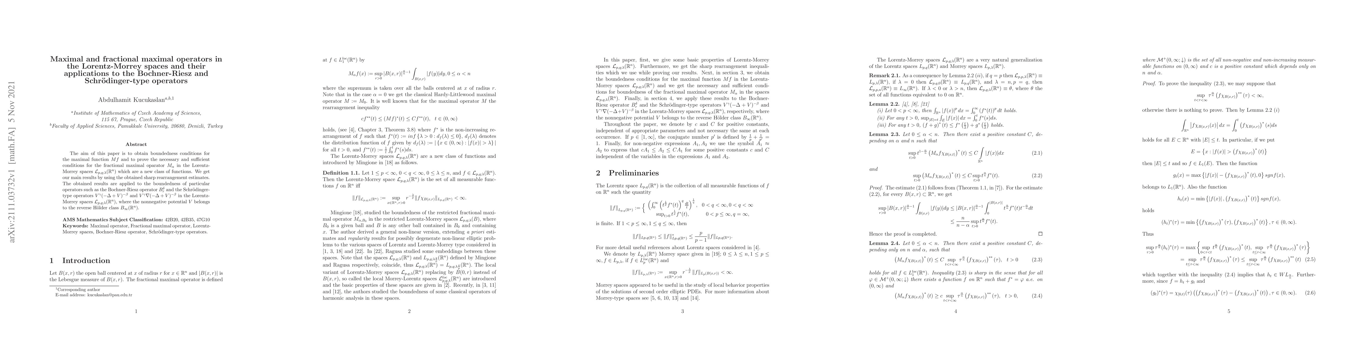 The aim of this paper is to obtain boundedness conditions for the maximal function Mf and to prove the necessary and sufficient conditions for the fractional maximal oparator Ma in the Lorentz Morrey spaces which are a new class of functions. We get our main results by using the obtained sharp rearrangement estimates. The obtained results are applied to the boundedness of particular operators such as the Bochner Riesz operator and the Schrodinger type operators in the Lorentz Morrey spaces, where the nonnegative potential V belongs to the reverse Holder class.