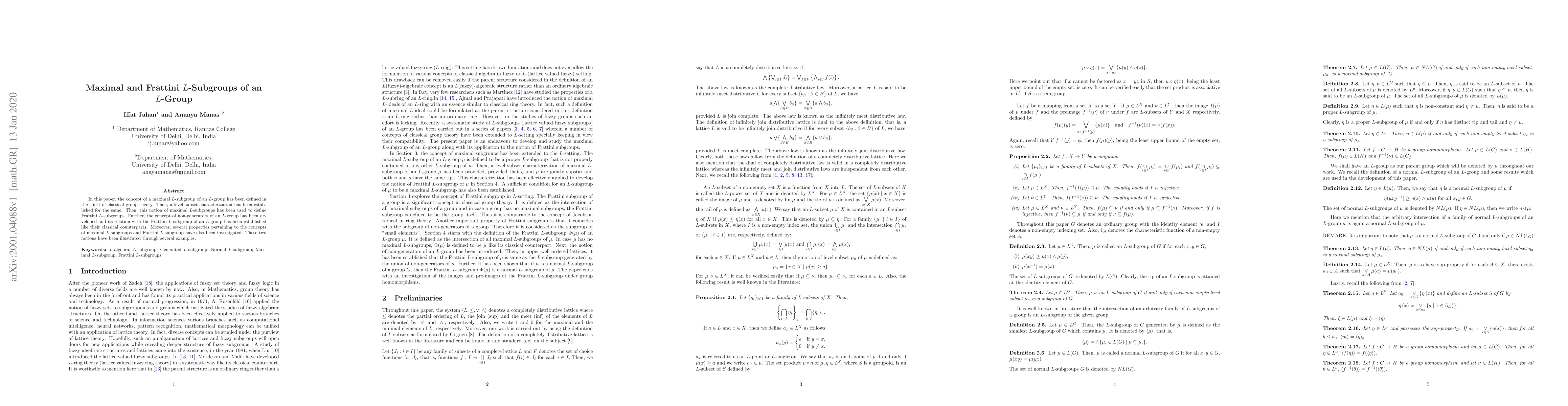 This paper defines maximal L-subgroups of an L-group and establishes their level subset characterization. It then introduces Frattini L-subgroups and explores their relation to non-generators within L-groups, mirroring classical group theory properties, and provides illustrative examples.