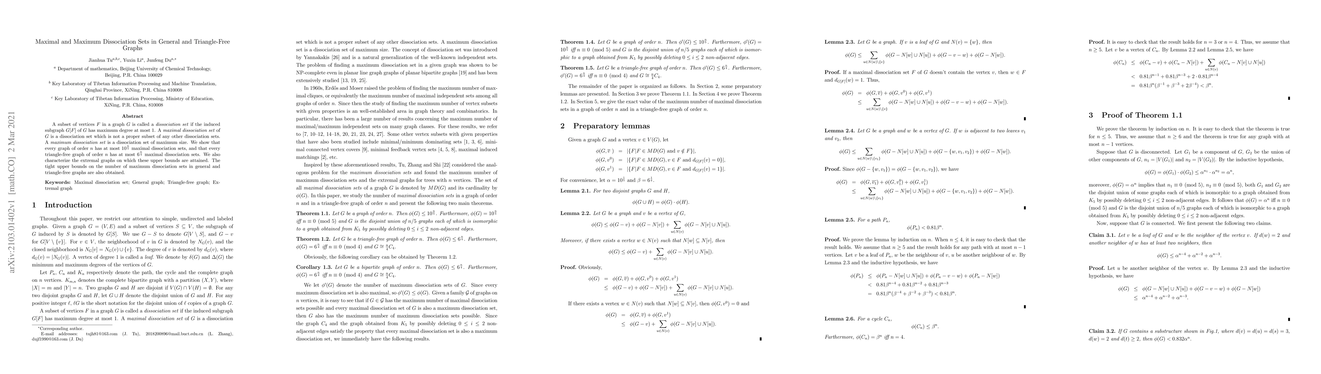 This paper investigates dissociation sets in graphs, showing that general graphs have at most $10^{\frac{n}{5}}$ maximal dissociation sets, while triangle-free graphs have at most $6^{\frac{n}{4}}$. It also provides tight upper bounds on the number of maximum dissociation sets for both general and triangle-free graphs.