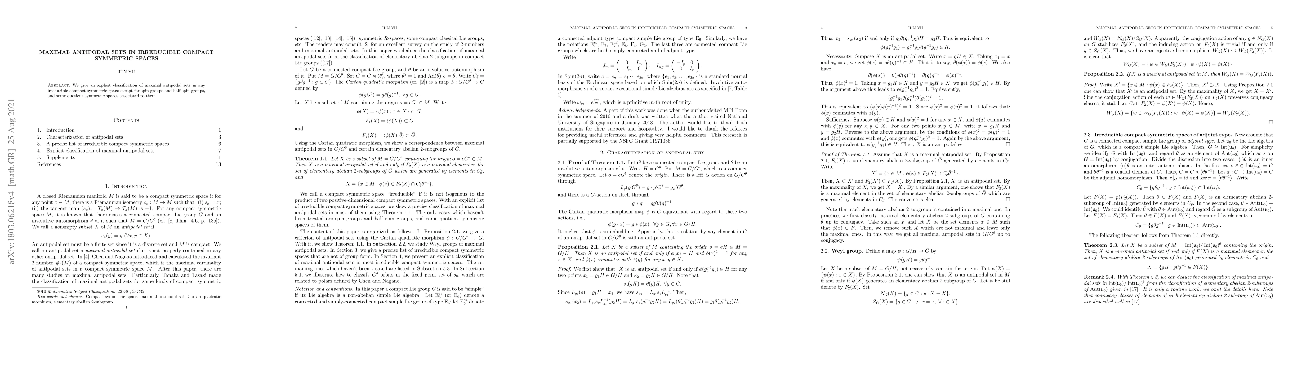 This paper classifies maximal antipodal sets in irreducible compact symmetric spaces, excluding spin groups and associated quotient symmetric spaces, providing explicit results for the remaining cases. The findings contribute to the understanding of geometric structures in symmetric spaces.
