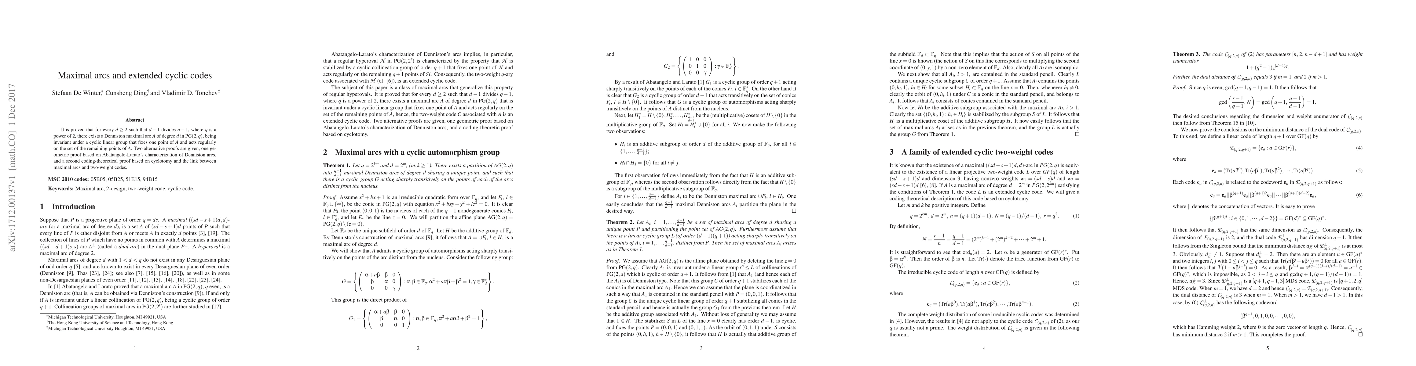 This paper proves the existence of Denniston maximal arcs of degree $d$ in $\PG(2,q)$ invariant under cyclic linear groups, with two proofs: one geometric and one coding-theoretical linking maximal arcs to two-weight codes.