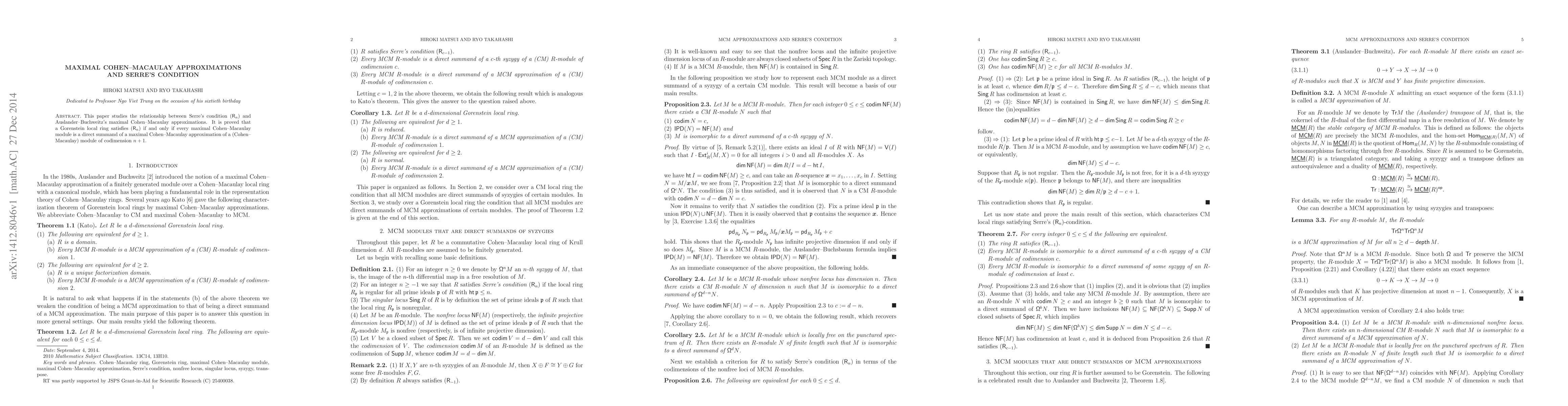 This paper establishes a connection between Serre's condition $(\R_n)$ and maximal Cohen-Macaulay approximations, proving that a Gorenstein local ring meets $(\R_n)$ if every maximal Cohen-Macaulay module is part of a maximal Cohen-Macaulay approximation for a module of codimension $n+1$.