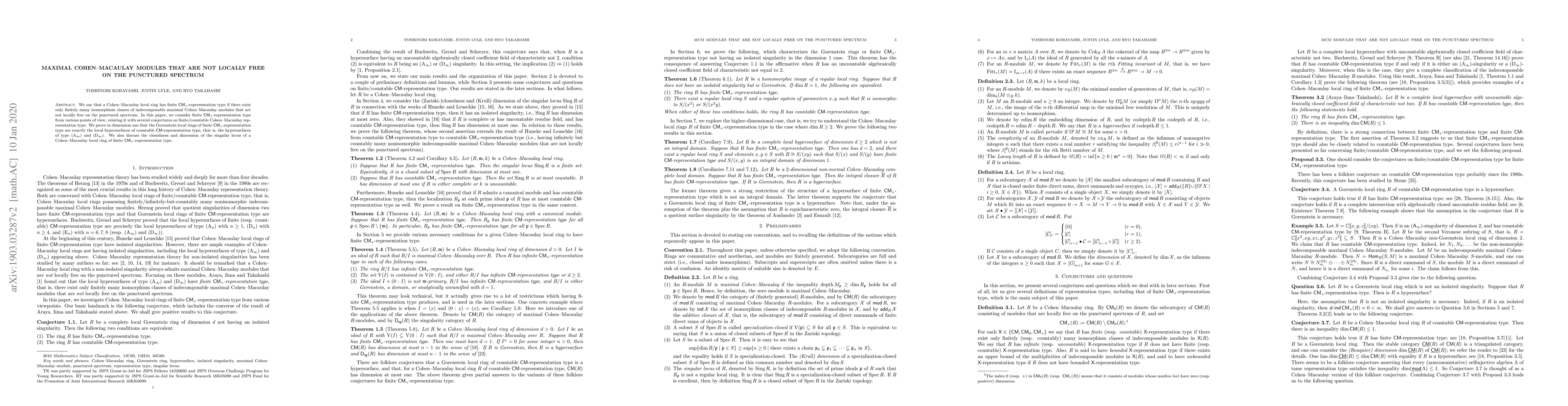 We say that a Cohen-Macaulay local ring has finite $\operatorname{\mathsf{CM}}_+$-representation type if there exist only finitely many isomorphism classes of indecomposable maximal Cohen-Macaulay modules that are not locally free on the punctured spectrum. In this paper, we consider finite $\operatorname{\mathsf{CM}}_+$-representation type from various points of view, relating it with several conjectures on finite/countable Cohen-Macaulay representation type. We prove in dimension one that the Gorenstein local rings of finite $\operatorname{\mathsf{CM}}_+$-representation type are exactly the local hypersurfaces of countable $\mathsf{CM}$-representation type, that is, the hypersurfaces of type $(\mathrm{A}_\infty)$ and $(\mathrm{D}_\infty)$. We also discuss the closedness and dimension of the singular locus of a Cohen-Macaulay local ring of finite $\operatorname{\mathsf{CM}}_+$-representation type.