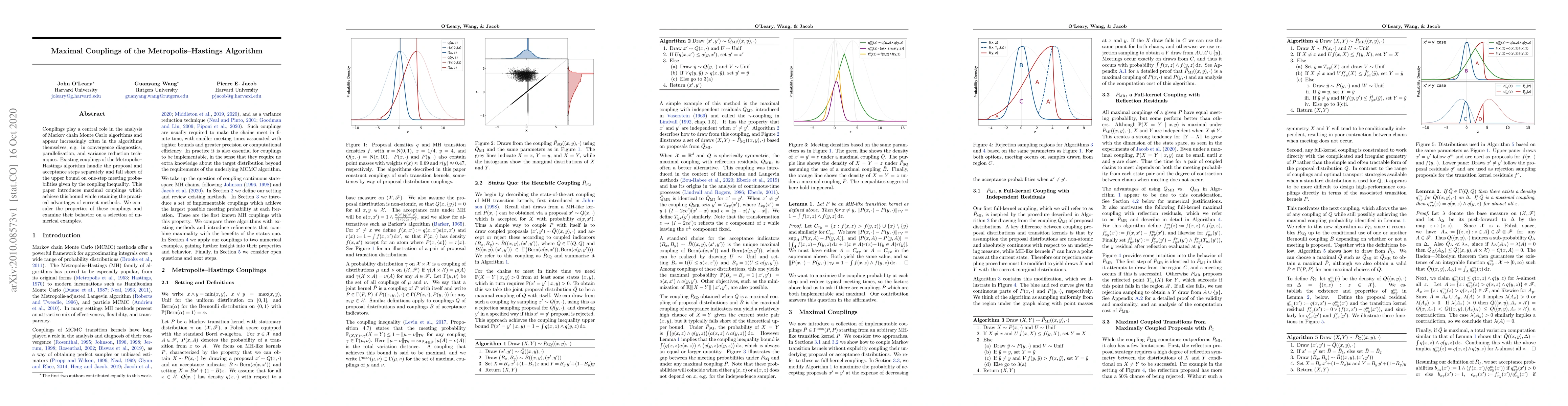 This paper introduces maximal couplings for the Metropolis-Hastings algorithm that achieve the upper bound on one-step meeting probabilities, addressing limitations of existing methods. The study examines these couplings' properties and their performance on various numerical examples.