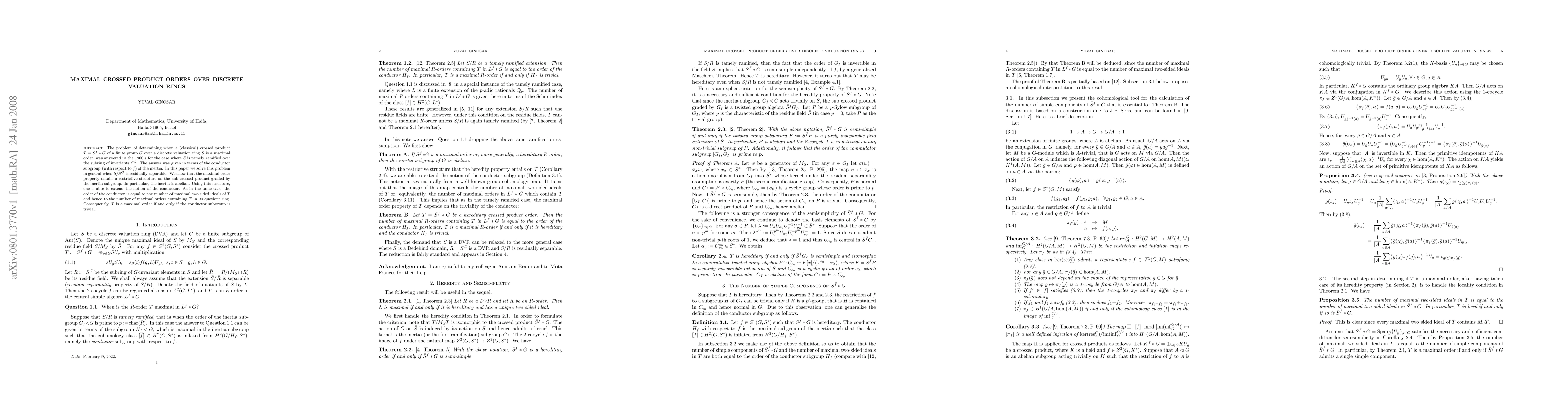 This paper addresses the conditions under which a crossed product $T=S^f*G$ over a discrete valuation ring $S$ is a maximal order, proving that this occurs if and only if the conductor subgroup of the inertia is trivial, with additional structural constraints on the inertia subgroup when $S/S^G$ is residually separable.