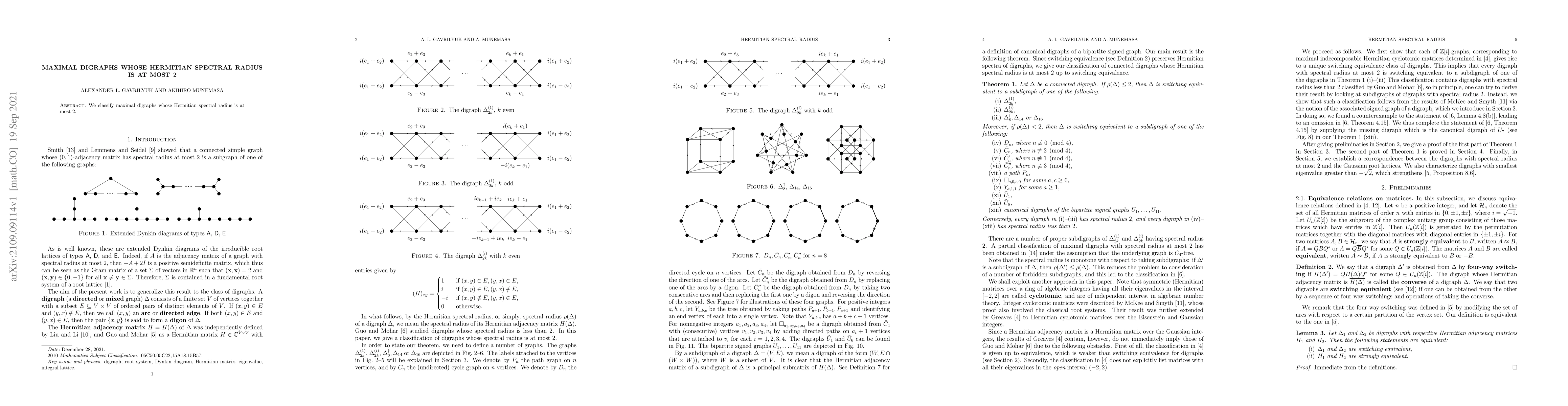 Summary: This paper identifies and classifies all directed graphs (digraphs) with the highest possible edge density where the largest eigenvalue of their Hermitian adjacency matrices does not exceed 2. The results provide a comprehensive understanding of such maximal digraphs within the given spectral constraint.