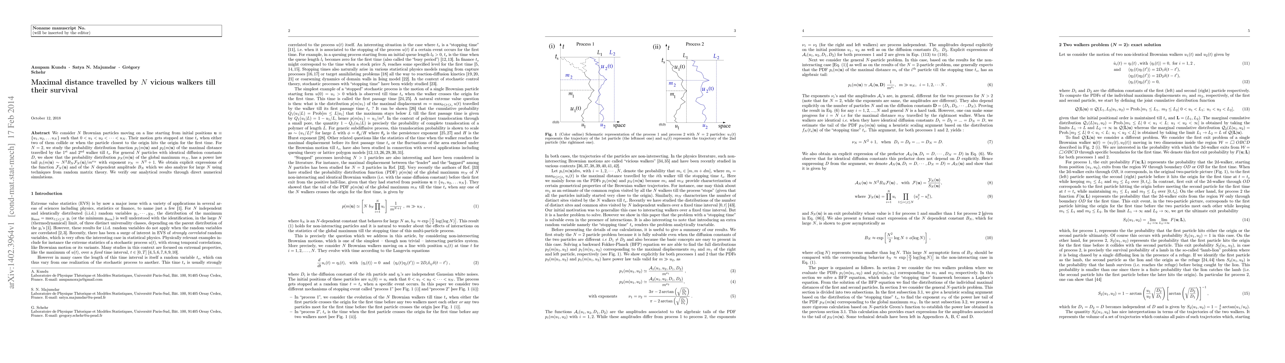 This paper investigates the maximal distance traveled by $N$ Brownian particles moving on a line before they either collide or the closest to the origin hits it. For $N=2$, it studies the probability distributions of the maximal distance for each walker. For general $N$, it shows that the probability distribution of the global maximum follows a power law with an exponent $\nu_N = N^2+1$, deriving explicit expressions for the amplitude and function involved, and verifying results via numerical simulations.